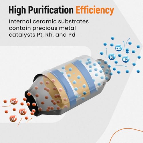 Design: Its high-flow design provides more O₂ to your engine, dramatically improving your exhaust system. Further, the honeycomb ceramic structure effectively purifies the waste gases, converting CO, HC, and NOx to CO₂, H₂O, and N₂