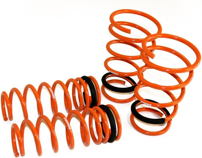 Megan Racing performance lowering springs are constructed of SAE 9254 cold wounded steel, one of the strongest materials available. The high tensile strength and phosphate powder coating delivers outstanding spring rates that are extremely durable and resist premature “sagging”.
