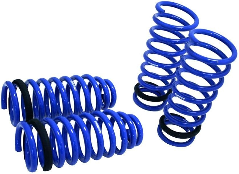 Megan Racing performance lowering springs are constructed of SAE 9254 cold wounded steel, one of the strongest materials available. The high tensile strength and phosphate powder coating delivers outstanding spring rates that are extremely durable and resist premature “sagging”.