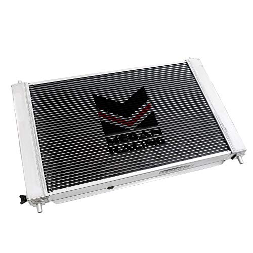 Megan Racing Radiators are comprised completely of aluminum. From the tanks to the primary core. Aluminum tanks are a great upgrade over the plastic usually found on factory radiators which are known to crack and leak especially as they age. The larger heat exchanging core is not only more efficient at transferring heat from the coolant, but also increases total coolant carrying capacity.