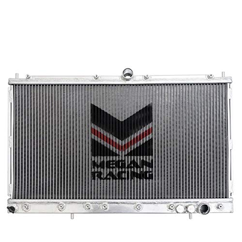 Megan Racing Radiators are comprised completely of aluminum. From the tanks to the primary core. Aluminum tanks are a great upgrade over the plastic usually found on factory radiators which are known to crack and leak especially as they age. The larger heat exchanging core is not only more efficient at transferring heat from the coolant, but also increases total coolant carrying capacity.