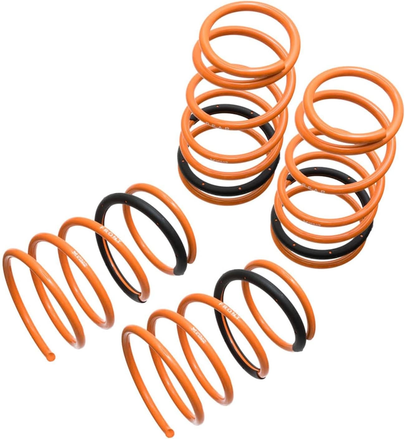Megan Racing performance lowering springs are constructed of SAE 9254 cold wounded steel, one of the strongest materials available. The high tensile strength and phosphate powder coating delivers outstanding spring rates that are extremely durable and resist premature “sagging”.