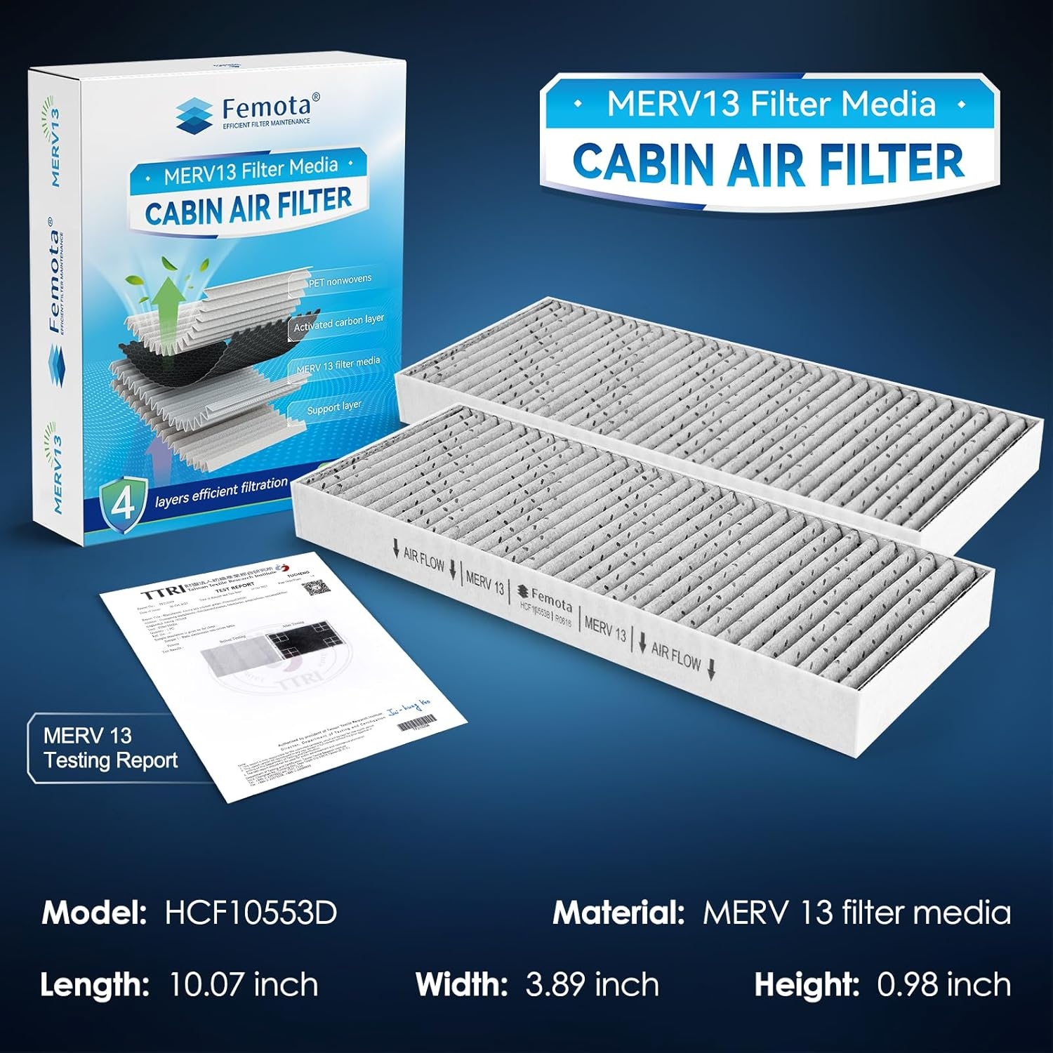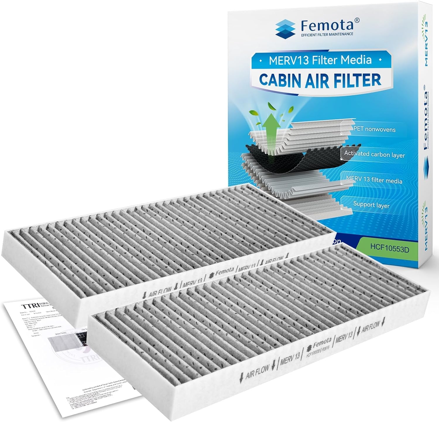 • MERV 13 Filter Media: made of tested MERV 13 filter media (ASHRAE52.2:2017 12), offers a superior balance between filtration and air flux, detailed test report included in the package