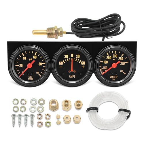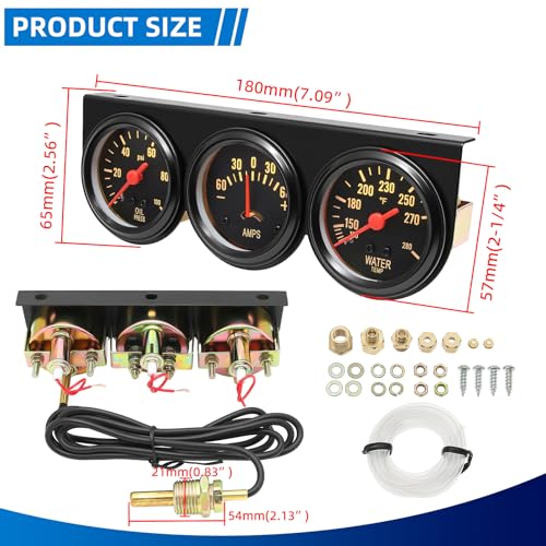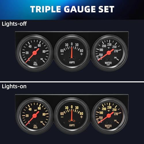Sensors Included: Triple Gauge Set comes with sensors. The oil pressure sensor is helping you monitor engine health, the AMP meter tracks electrical system performance, and the water temperature sensor assists in keeping you conscious about potential overheating issues