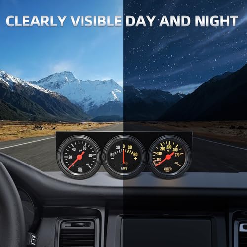 Easy Installation & Universal Fit: Oil pressure Water temperature and Ammeter set designed for 12V vehicles, this 3 gauge cluster kit is simple to put in and suitable for such a lot 12V cars, trucks
