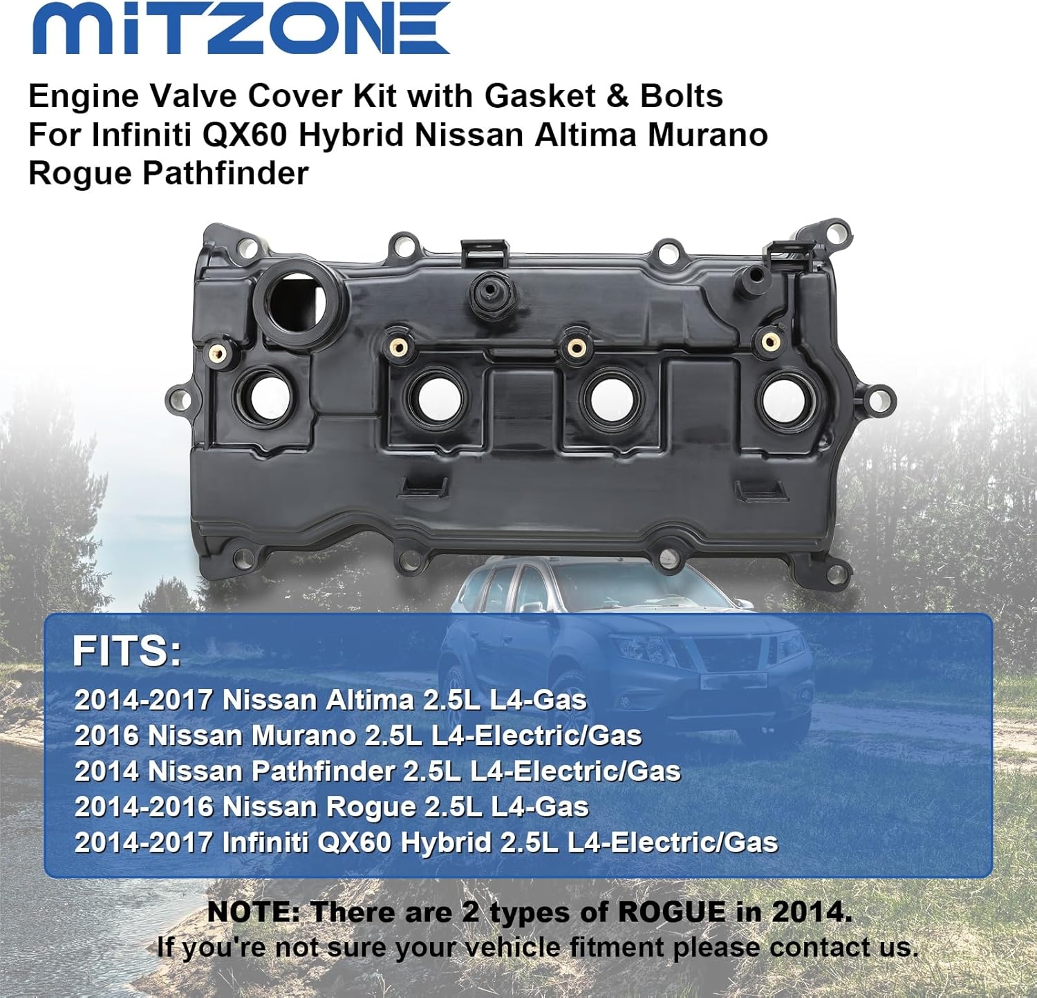 Specification: MITZONE Engine Valve Cover Compatible with 2014-2017 Nissan Altima Rogue Murano 2014 Pathfinder 2014-2017 Infiniti Qx60 2.5L Replace 13264-3KY0A
