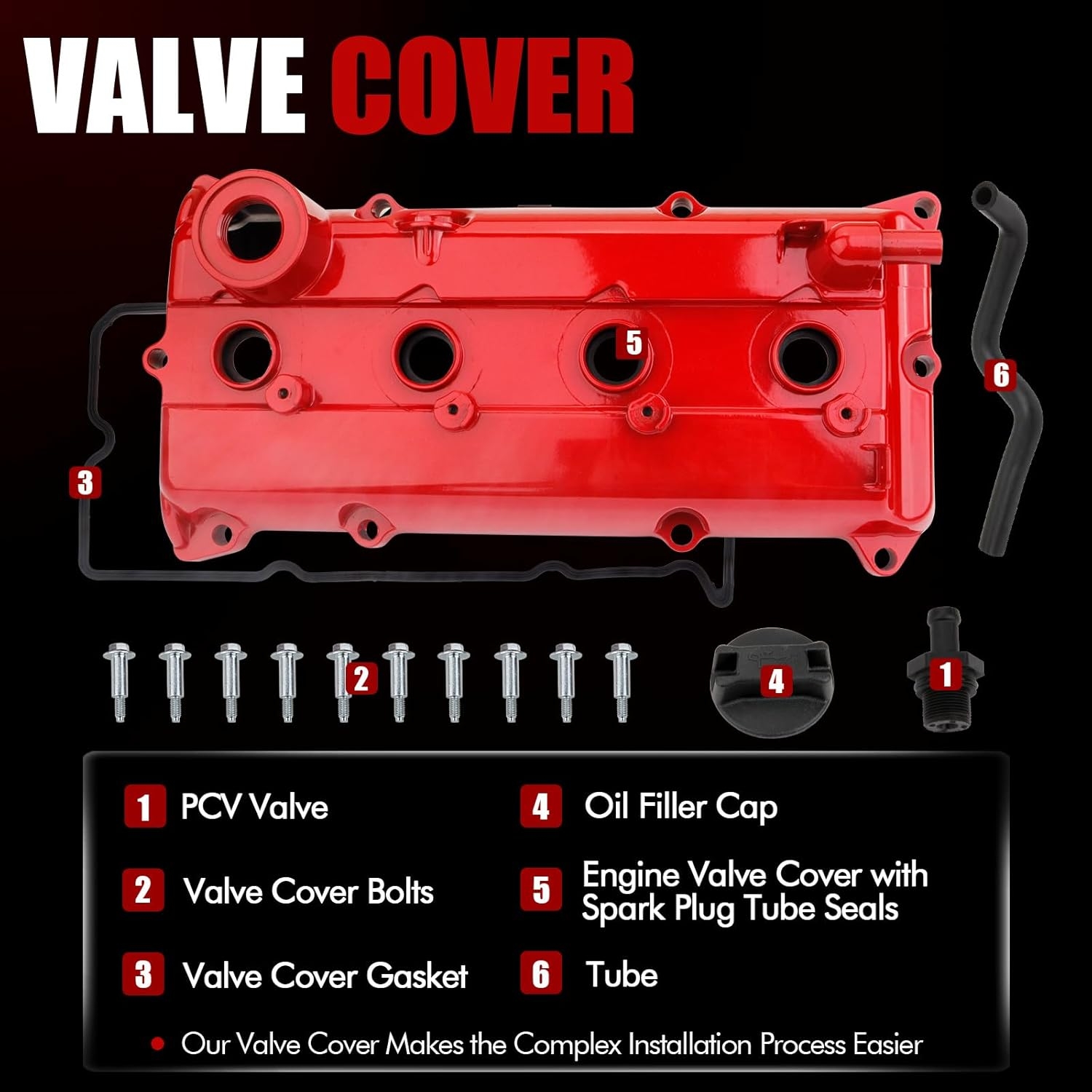 • Complete Package: Includes all necessary components for a smooth and hassle-free installation: 10 bolts, 1 oil cap, and 1 gasket, with Plug Tube Seal, PCV Valve Everything you need for a comprehensive valve cover replacement