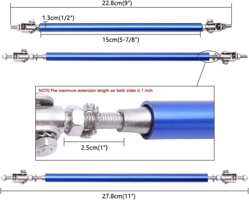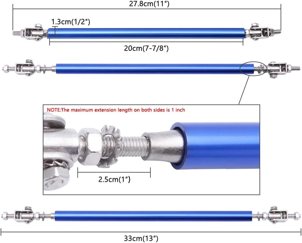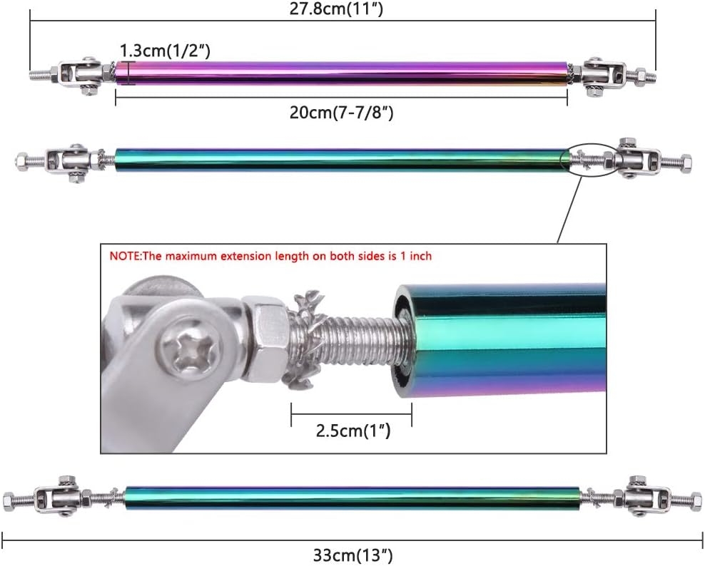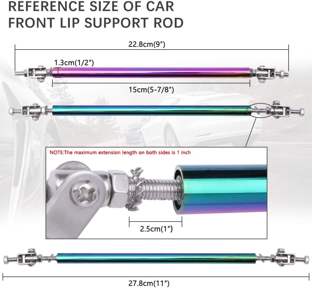 Specification: 2PCS Adjustable Splitter Strut Rods, 6″-11″ Front Lip Strut Rod Bumper Splitter Universal Tie Support Bars (Multicolor, 8″-11″)