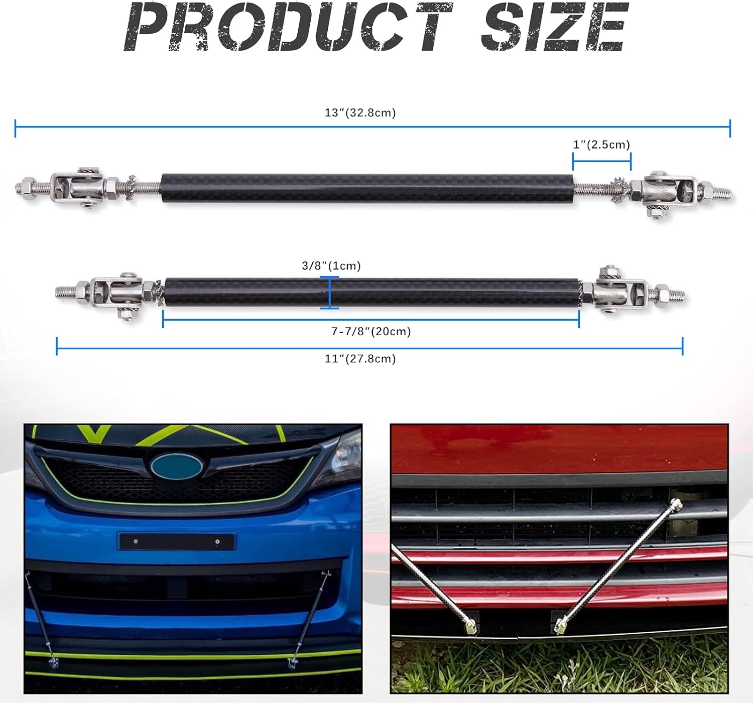 • ⚙️ Adjustable Length (6″–11″) for fine-tuned fitment on bumpers, lips, and splitters.