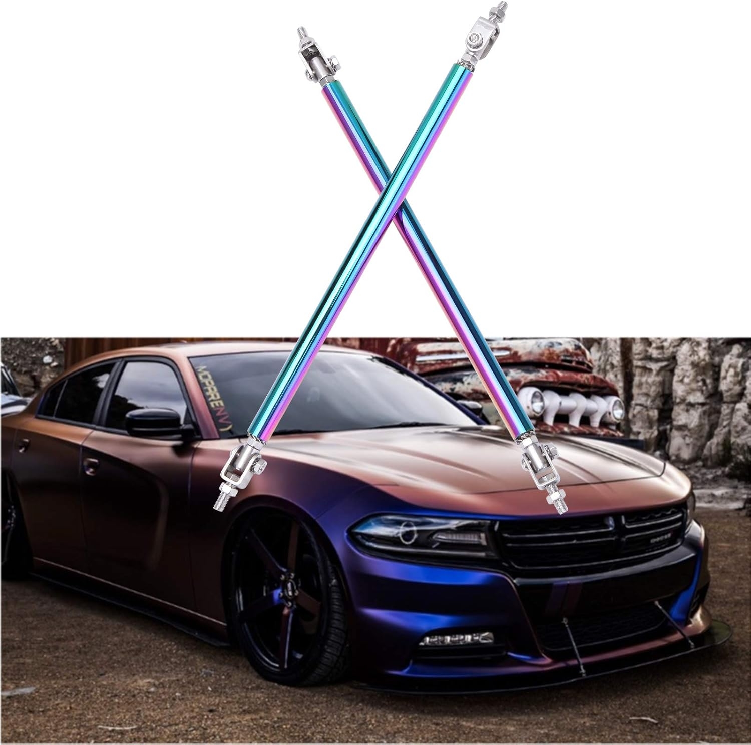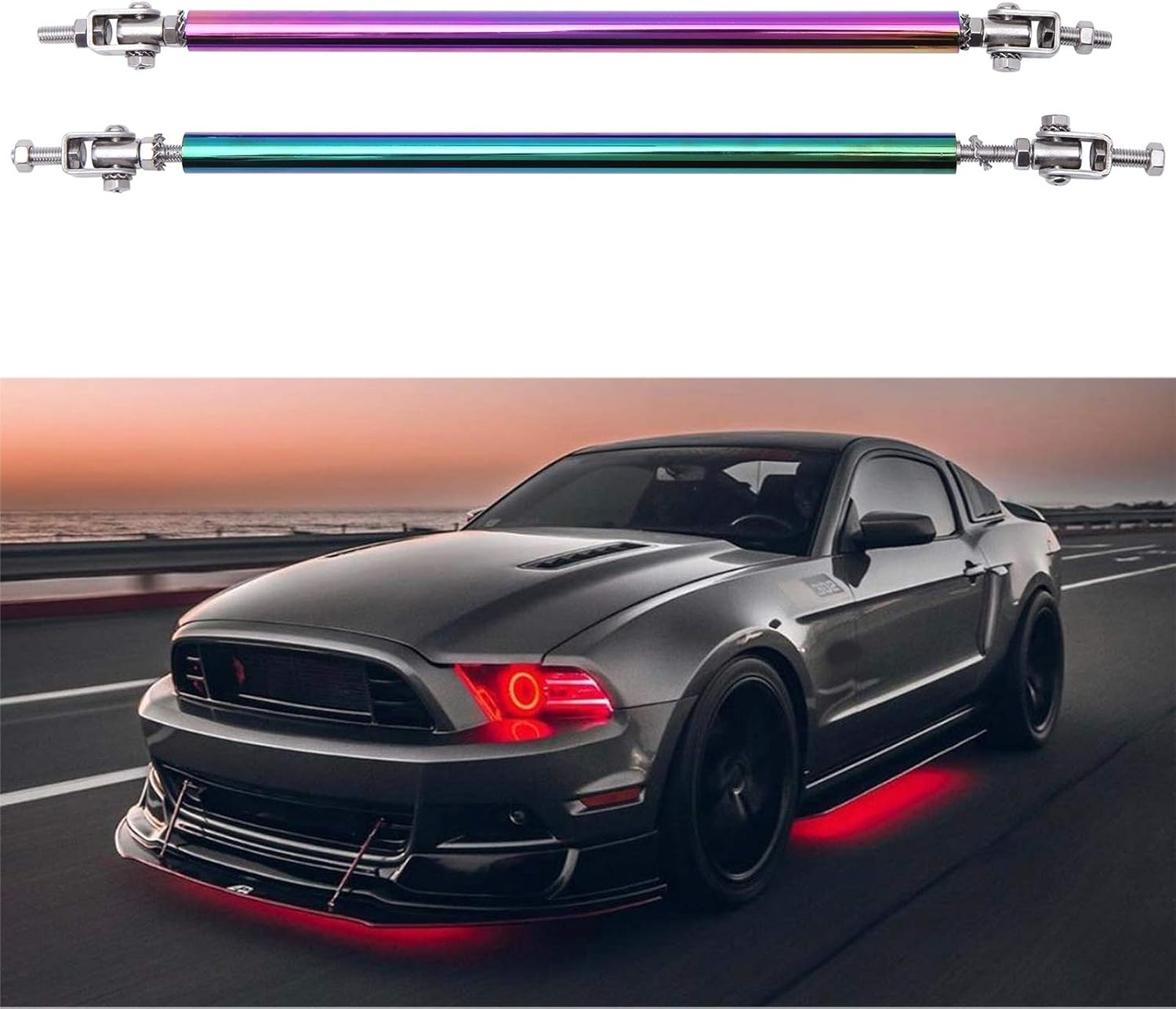 Made from lightweight aluminum alloy and finished in a vibrant multicolor anodized tone, these rods not only stiffen your aero but also make your front end pop like it just rolled off a show floor