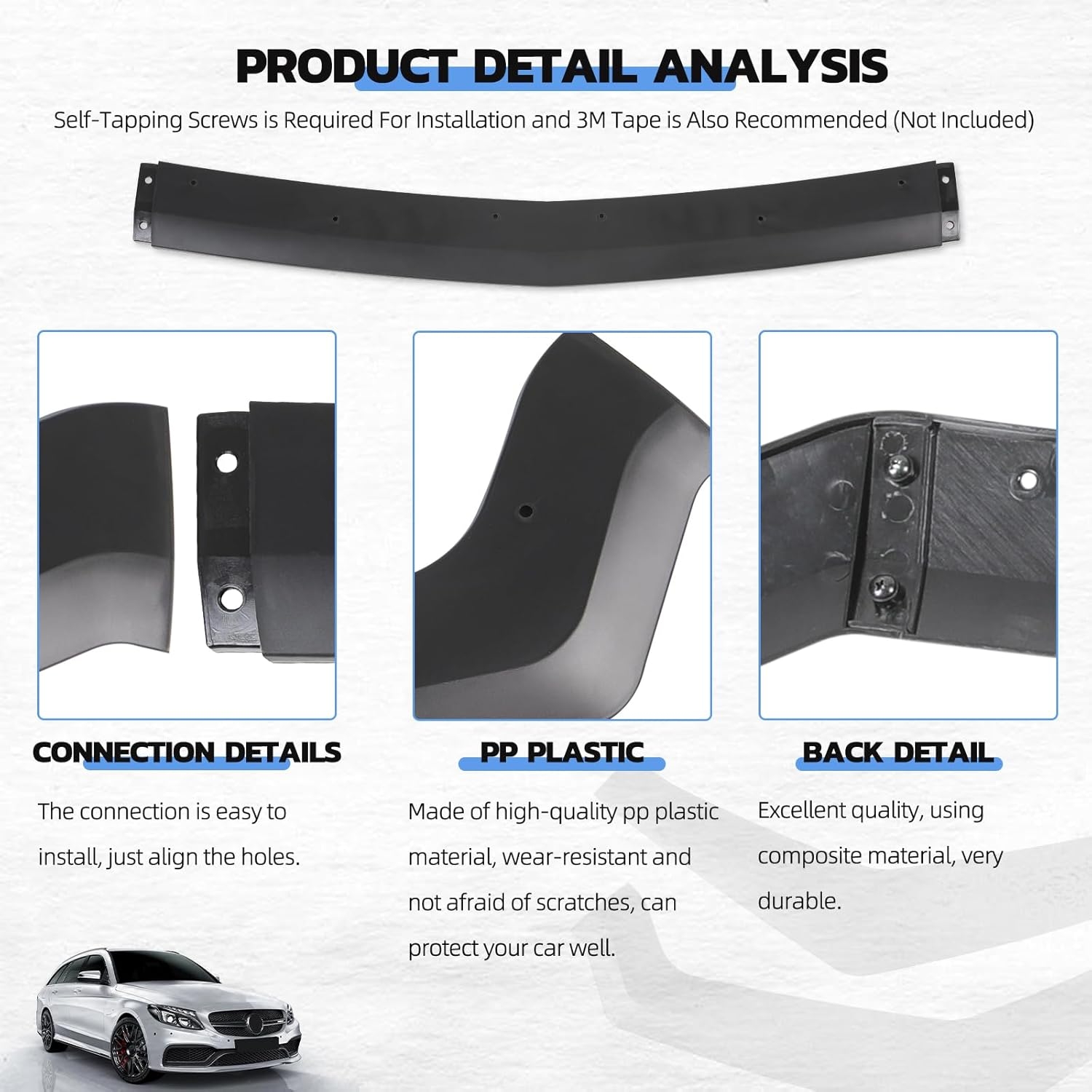- Note:It must be the version that comes with the original front lip of the original car to install it, and it is installed in the original car holes