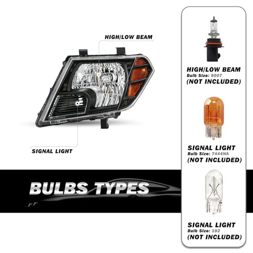 FITMENT: Headlight Assemblies Fit for 2009 2010 2011 2012 2013 2014 2015 2016 2017 2018 2019 2020 2021 Frontier.Compatible with Halogen Headlights Model. Not Compatible with Factory LED Headlamp Model. High / Low Beam Bulb Type: 9007. Bulbs are not included. OEM Part Number: 26010-ZL40B, 26010ZL40A, 26060-ZL40B, 26060ZL40A. Partslink Number: NI2502188, NI2503188