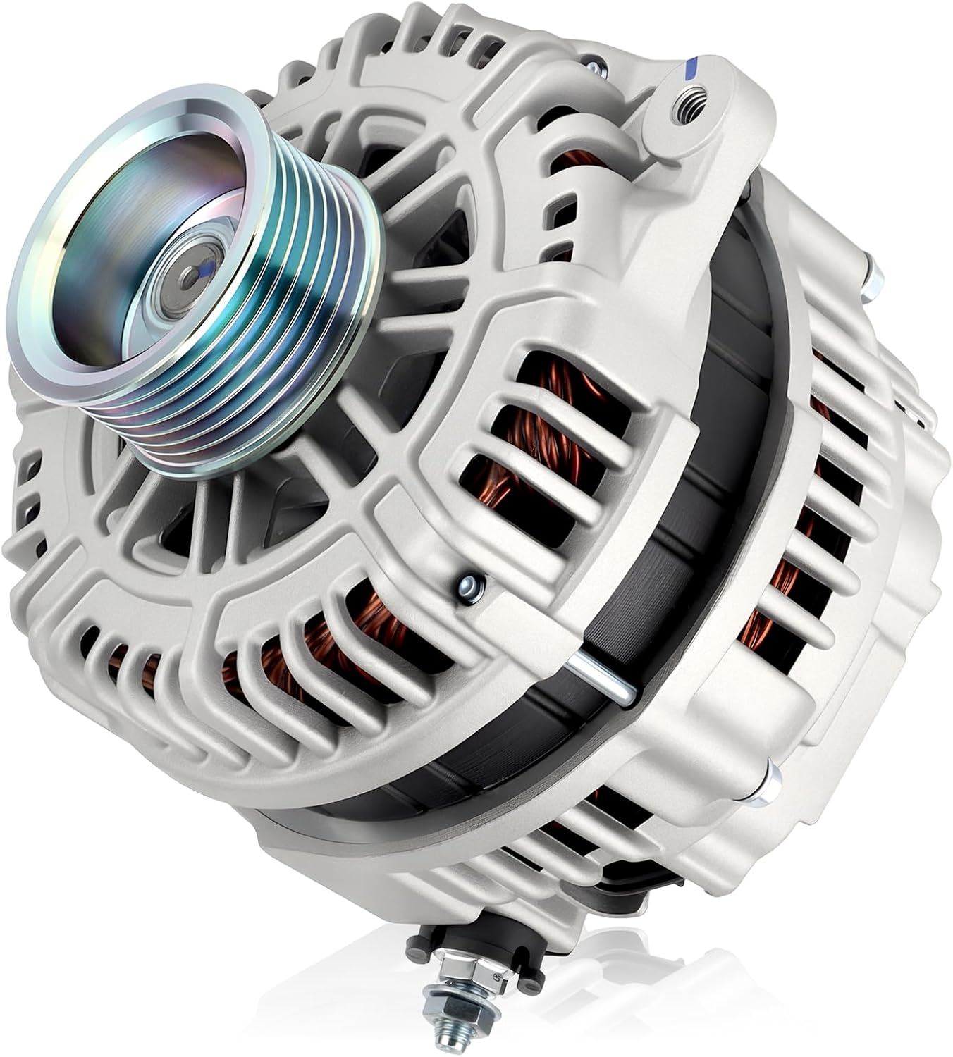- Premium Auto Parts Alternator: Made with high-grade aluminum materials for long-lasting performance. Provides automotive replacement alternators with precision CNC machined castings, higher output power, and more cooling, which reduces stress on the alternator and extends its service life
