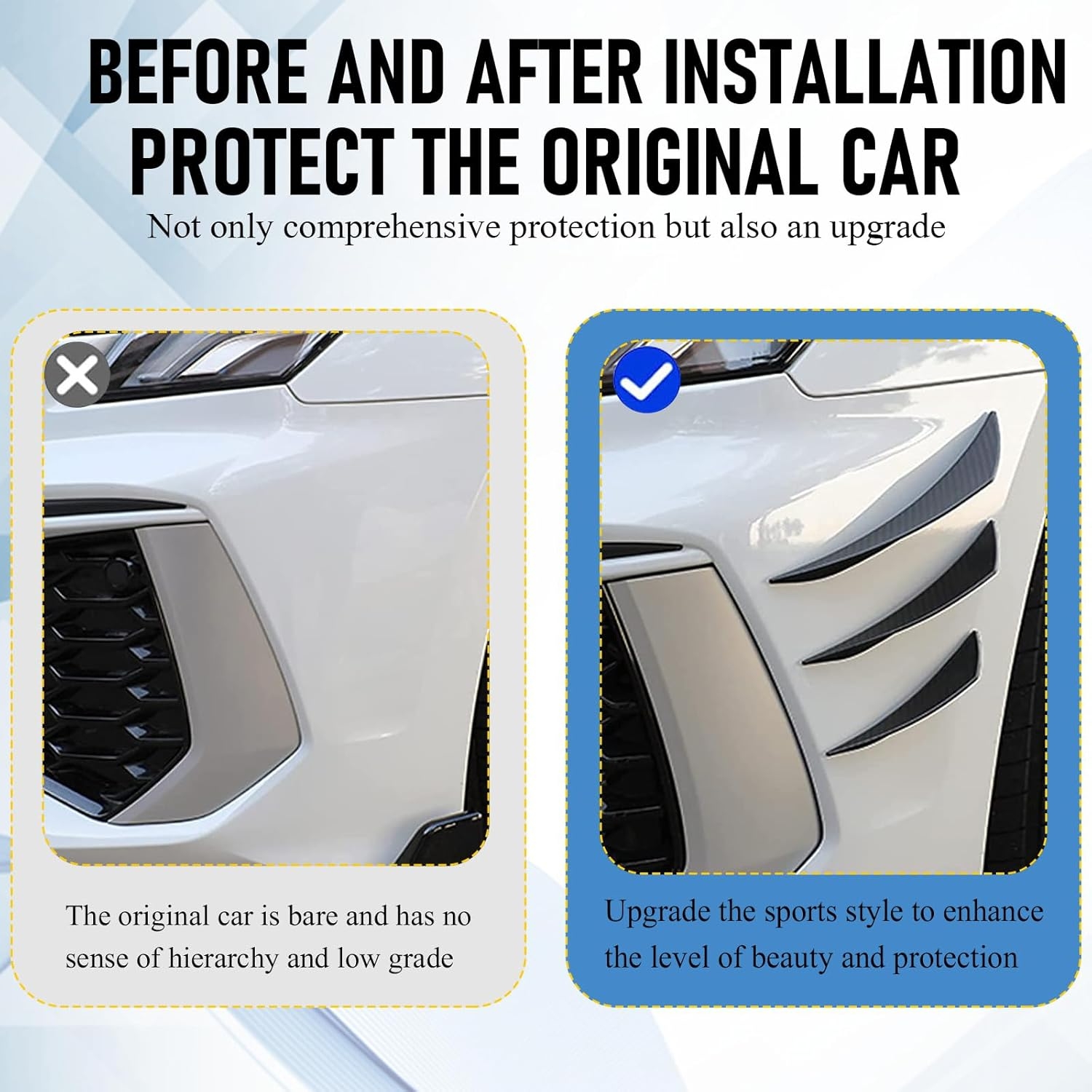 - Fashion Decoration: The front bar guards are available in classic carbon fiber black or glossy black appearance. Gives the car a sporty and textured look with superb workmanship and exquisite decoration Upgrade the appearance of your car and add your racing style.