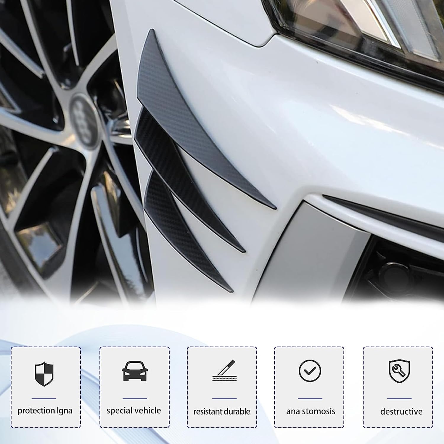 The Universal Car Spoiler Canards Kit doesn’t just add eye-catching flair—it’s designed to improve your car’s aerodynamics and reduce air drag around the front bumper. The soft rubber construction acts as a protective buffer, minimizing scratches and scuffs from curbs or debris while offering flexibility and easy installation.