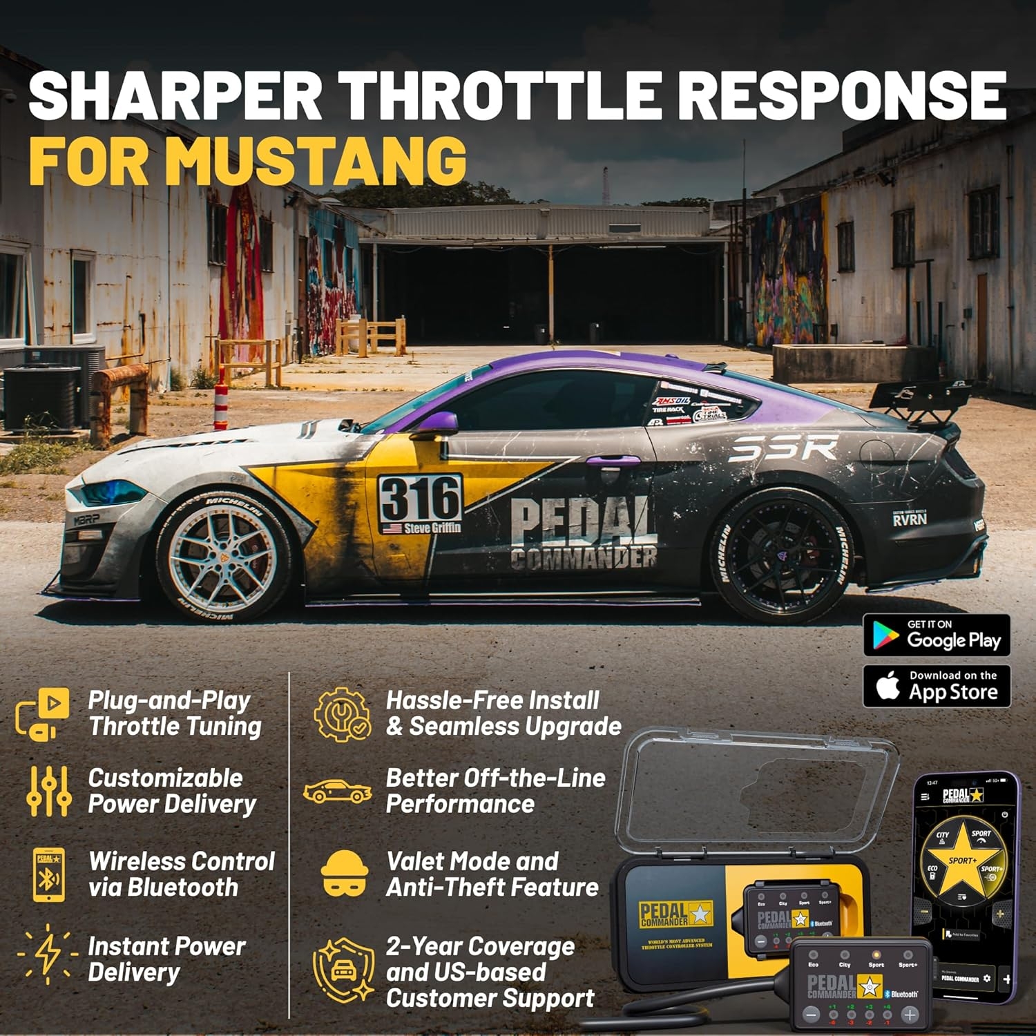 PEDAL COMMANDER Throttle Response Controller Compatible with Ford Mustang 2011-2025, Plug-and-Play, 4 Modes 36 Sensitivity Levels, App Control Anti-Theft, Performance Upgrade, Ford Mustang Accessories