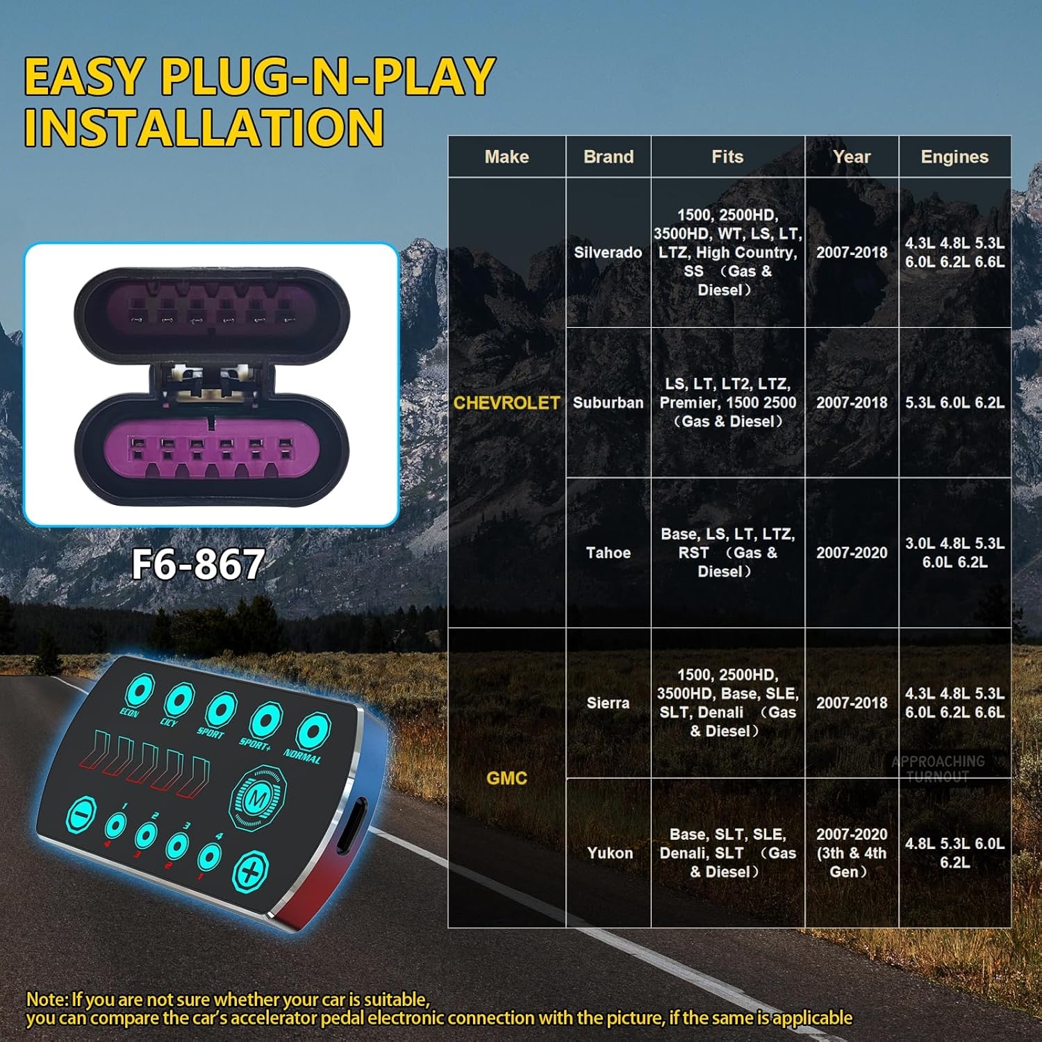 🔌 Plug-and-Play Installation: Connects directly to the throttle sensor — no cutting or rewiring required.