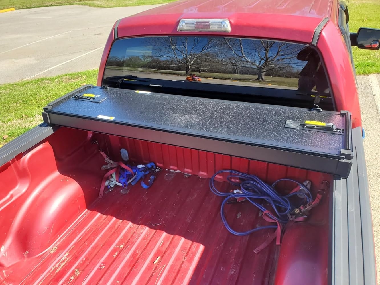 I looked at a lot of hard tonneau covers. This one is nice, well made and a fantastic price. It is easy to install. It sits above the bed, so if you were looking for a flush mount, this isn’t for you. The clamps holding it on feel cheap, but they do the job. The one drawback with this is that if you need the whole bed, you have to remove the tonneau completely. The last section doesn’t “tilt up” against the rear window, as some other brands do. When I purchased this, it was $350 total, which is less than half the price of a tilt up tonneau. I don’t haul a lot of stuff, so I would rather pay less for a good tonneau than way more for a feature I would seldom use. I installed this on a 2013 Ford F-150 with the 5.5′ bed. Looks great and works even better. This also bumped my highway fuel mileage from 17.5 mpg to 20 mpg.