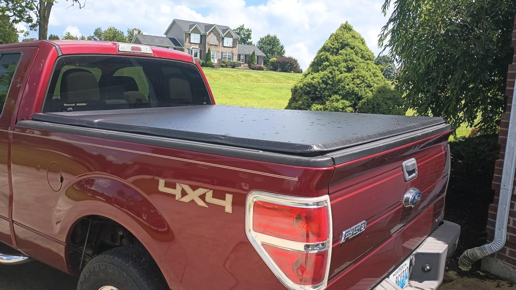 I bought the Titanicmotor quad fold soft cover for my 2014 Ford F150. It had a Bakflip hard cover on it from the previous owner that had worn out. I like the Bakflip covers, but they are $1000. After thinking about it a good bit, I decided to try this quadfold cover for $187. Overall, I am very pleased with the cover so far. Its been installed for a month. It keeps the water out of the bed, which was my main concern. The truck is parked outside and I leave tools and farm supplies in the back often, and don’t want water leaking in on those things. It looks nice. It is lightweight and easy to remove. I am a little leary about trying to leave it on and going through an automatic carwash, but it can be taken off pretty easily. It took about 20 minutes to install. We’ll see how it holds up, but for the price, so far I’m satisfied.