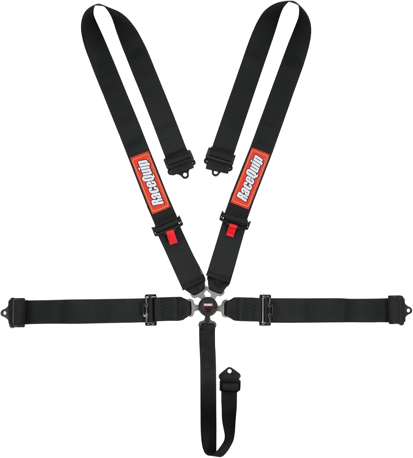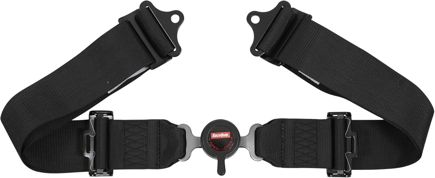 RaceQuip’s 5-Point Camlock Harness System features twin individual shoulder belts and carries an SFI 16.1 Rating. The lightweight aluminum alloy cam buckle provides precise spring pressure for a positive feel when rotating the lever to the 45 degrees (right or left) unlatch movement. This motorsports seat belt system also has a “pull-down” lap belt design which means you pull the lap belt ends away from the cam buckle to tighten the belts. The cam buckle stays attached to the right side lap belt when not in use. This auto racing harness is manufactured using premium 3″ polyester webbing and drop-forged steel 3 bar slides and bolt-on hardware ends. The double adjustable ends allow mounting as either wrap around or bolt-in. Shoulders adjust from 25″ to 72″ and lap belt adjusts from 30″ to 70″. NOTE: RaceQuip motorsports harness sets and seat belts are NOT D.O.T. / FMVSS 209/302 certified for on-highway use. They are only to be used in racing vehicles off of public streets and highways. All racing harness sets are designed to be mounted in a race vehicle to a roll cage or harness bar – if you do not have either, you should not try to install any RaceQuip harness set or seat belts. Available in black, red, blue, or green – one “set” of seat belts equals one seat.