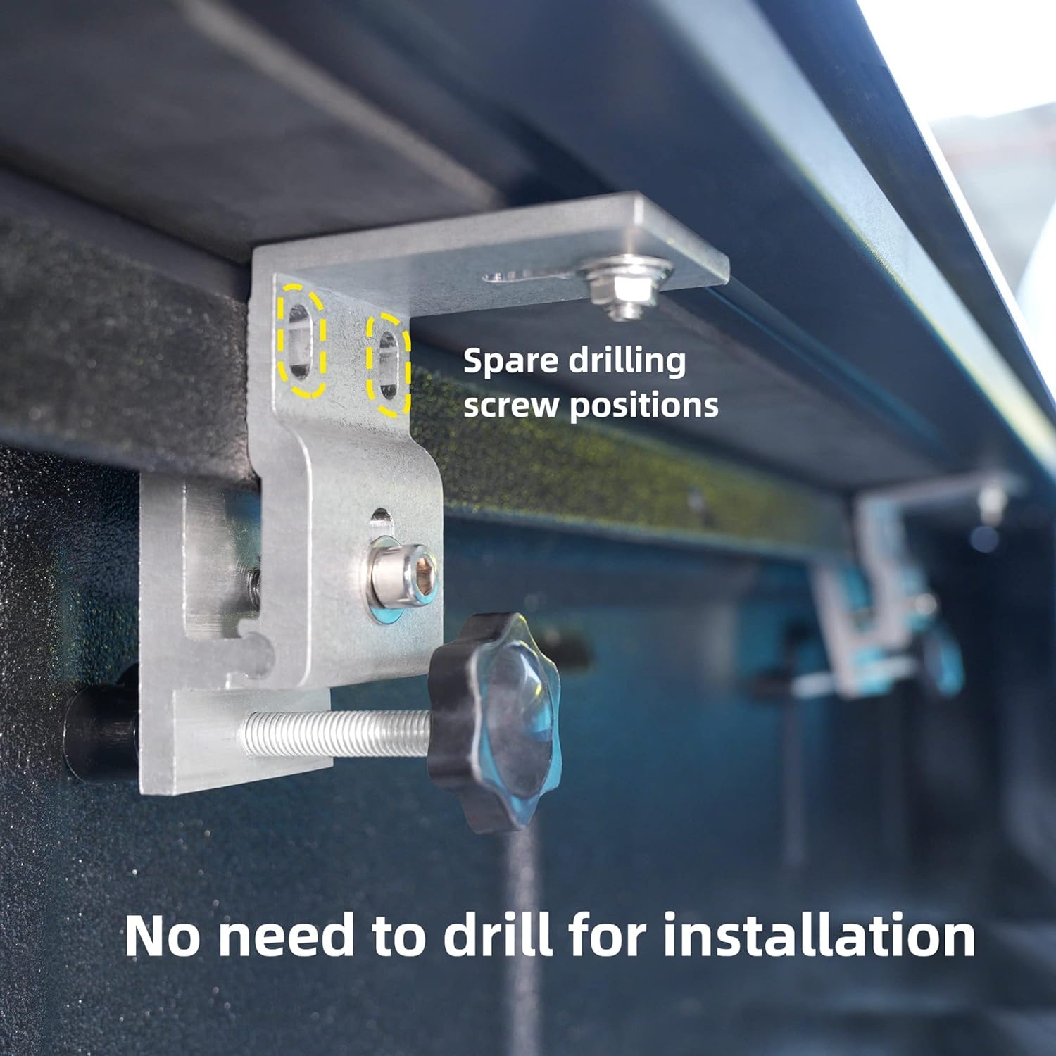 No drilling required. Installs fast, removes cleanly, and doesn’t ruin your rails or your mood.