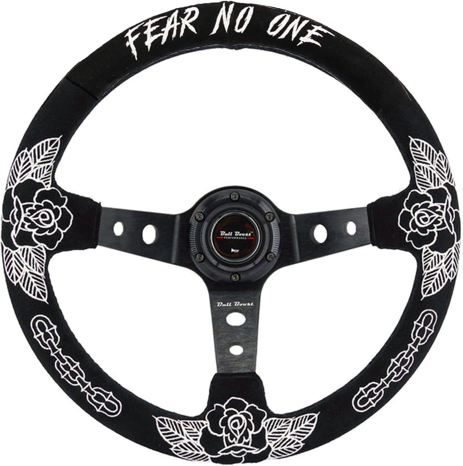 BORN TO RIDE LOW! INCLUDES: 1 X Bull Boost Performance Signature Steering Wheel As Shown in Picture Above Material: Black Hand Wrapped Quality Suede White Color Stitching Brushed Anodized Finish Strong Aluminum SPECS: 350mm Diameter 3″ Deep Dish Racing Spec. Weights Approximately Only 3.00 lbs, Light-Weight Design Includes Horn and Resistors