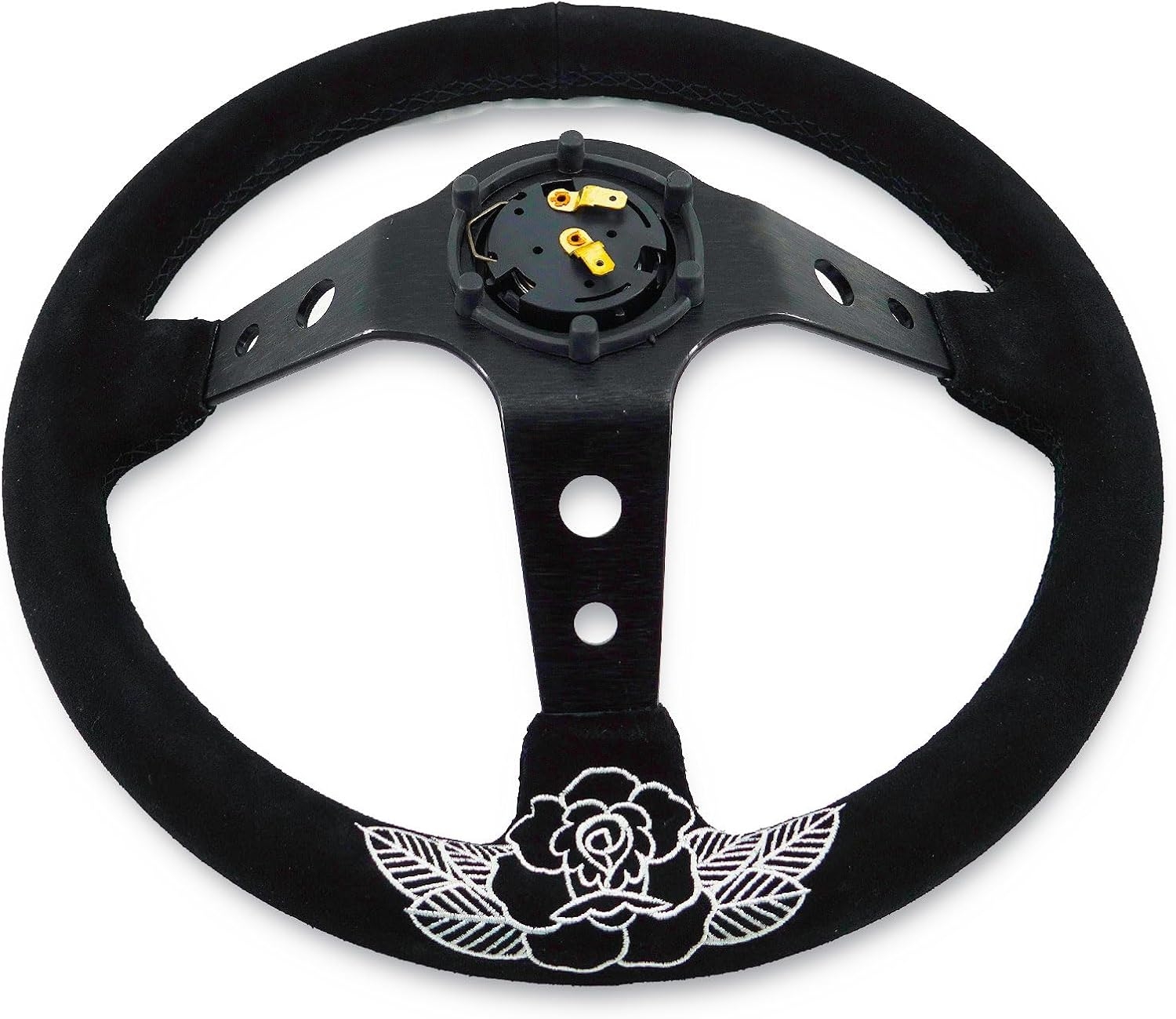 The Rose Deep Dish Steering Wheel 350mm combines JDM style, motorsport engineering, and premium materials to create the ultimate steering upgrade. Its deep dish design, suede grip, and rose-engraved centerpiece make it the perfect wheel for enthusiasts who want performance and personality in every detail.