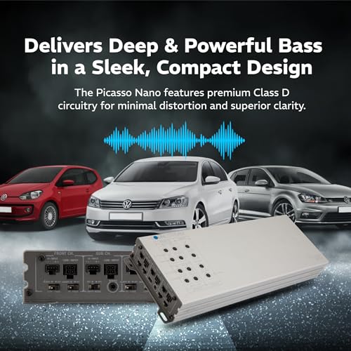 Picasso Highlights: Picasso Nano series amplifiers with class-d technology. Compact subwoofer amps with a single monoblock channel, 5 channel amp with adjustable specs, Sub frequencies offer variable low-pass filters (35-250 Hz, 12 dB/octave) | variable subsonic filters (10-50 Hz, 12 dB/octave) | variable bass boost (0-12 dB, at 45 Hz) | Frequency Response 10-250 Hz