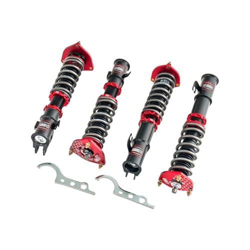 LIGHTWEIGHT AND DURABLE CONSTRUCTION – The IAG Spec Street Series Coilovers By Fortune Auto incorporate the use of lightweight, yet durable T6061 aluminum in the camber plates and spring perches to maximize weight savings without compromising the strength or integrity of the suspension. The coilover springs are constructed from an advanced premium alloy of chrome silicone, providing both elasticity and strength, ideal for high-performance applications.
