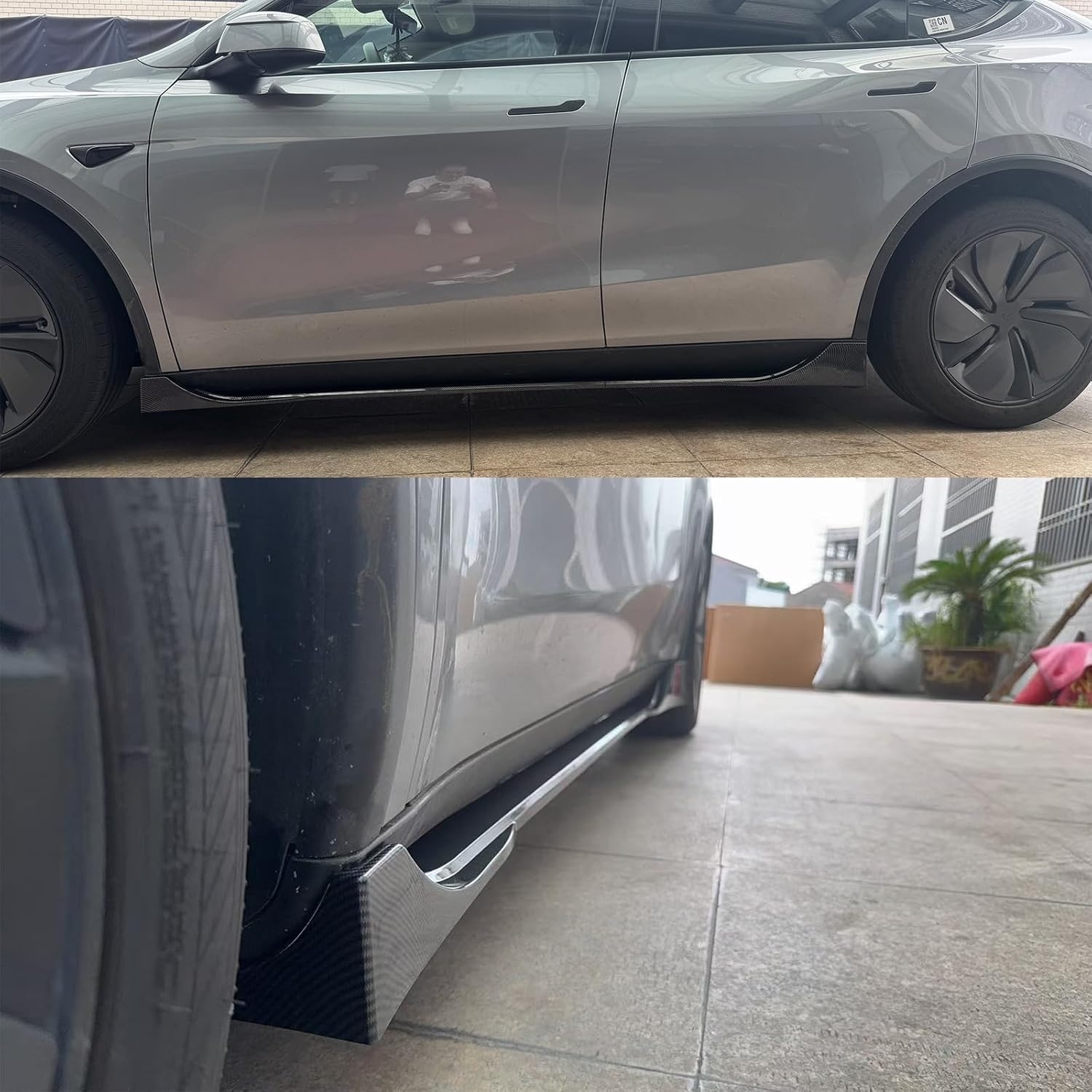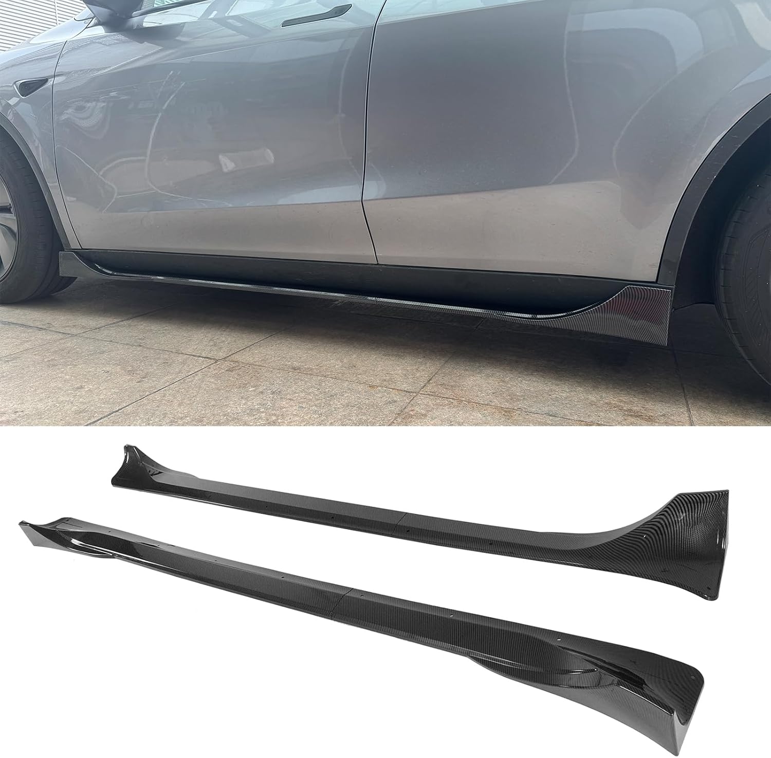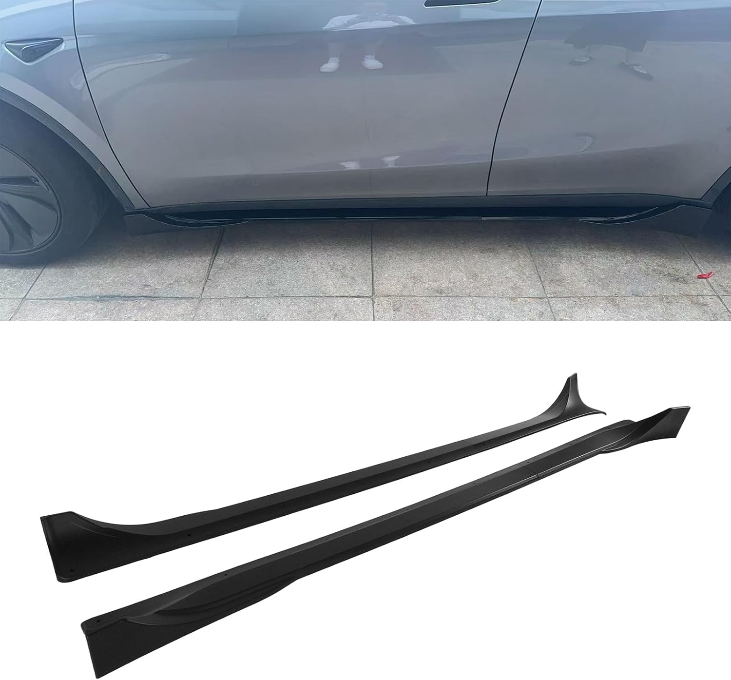 These side skirt extensions install directly onto the factory rocker panels using standard mounting methods. Professional installation is recommended for perfect alignment — because symmetry matters, even on an EV.
