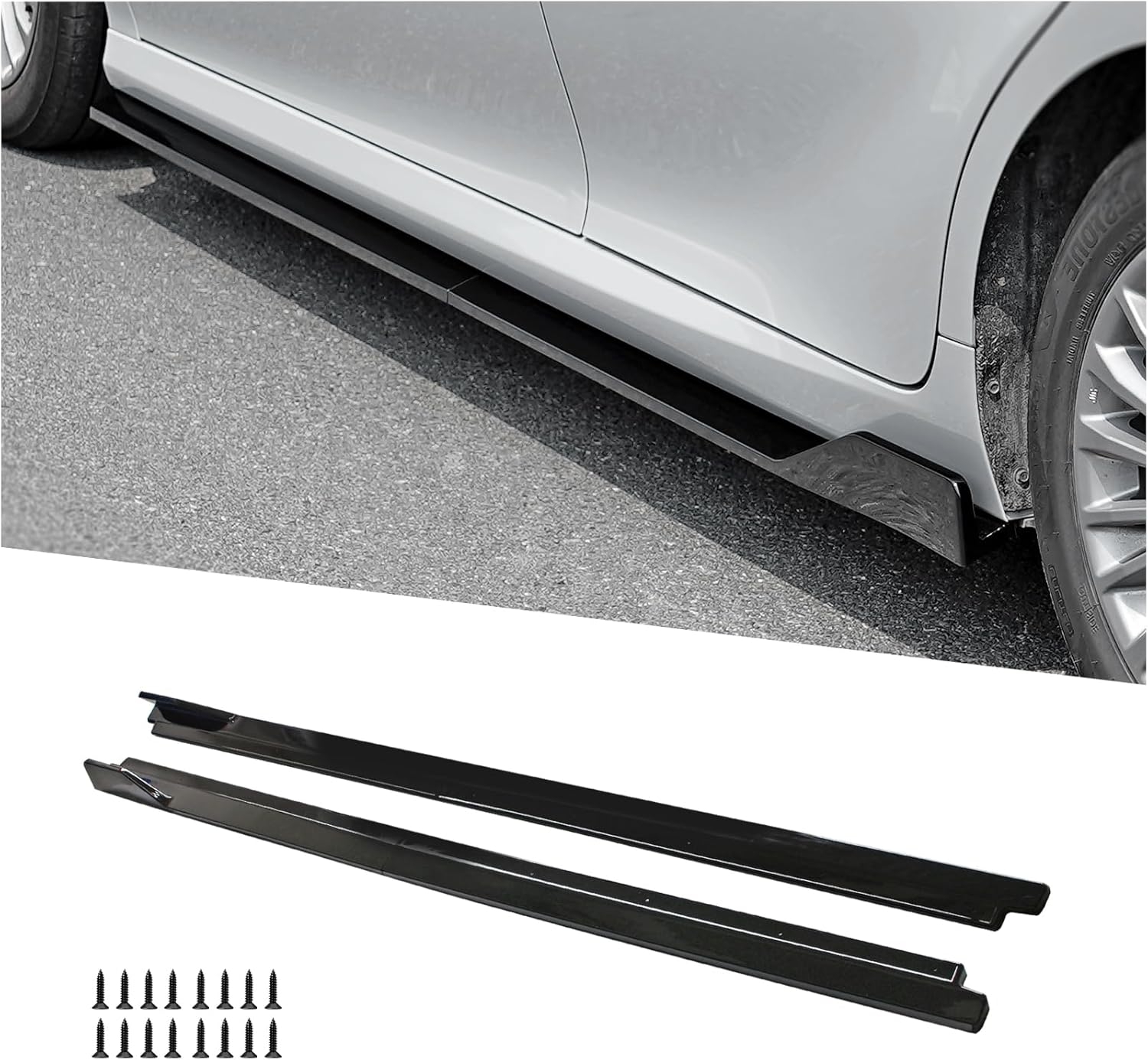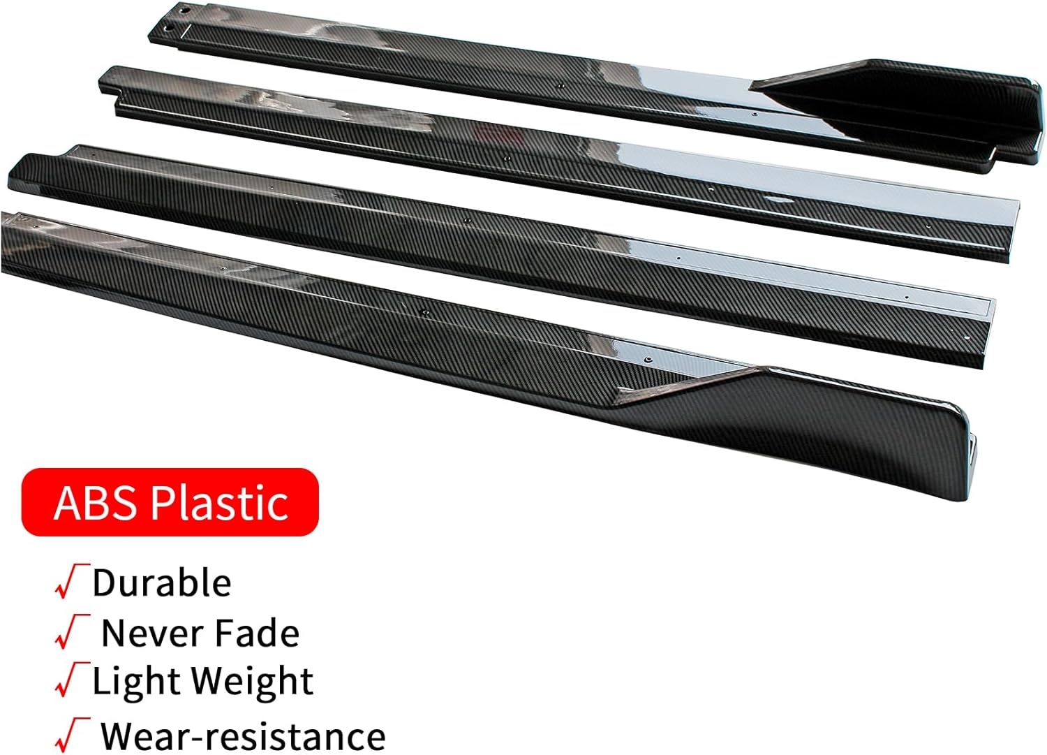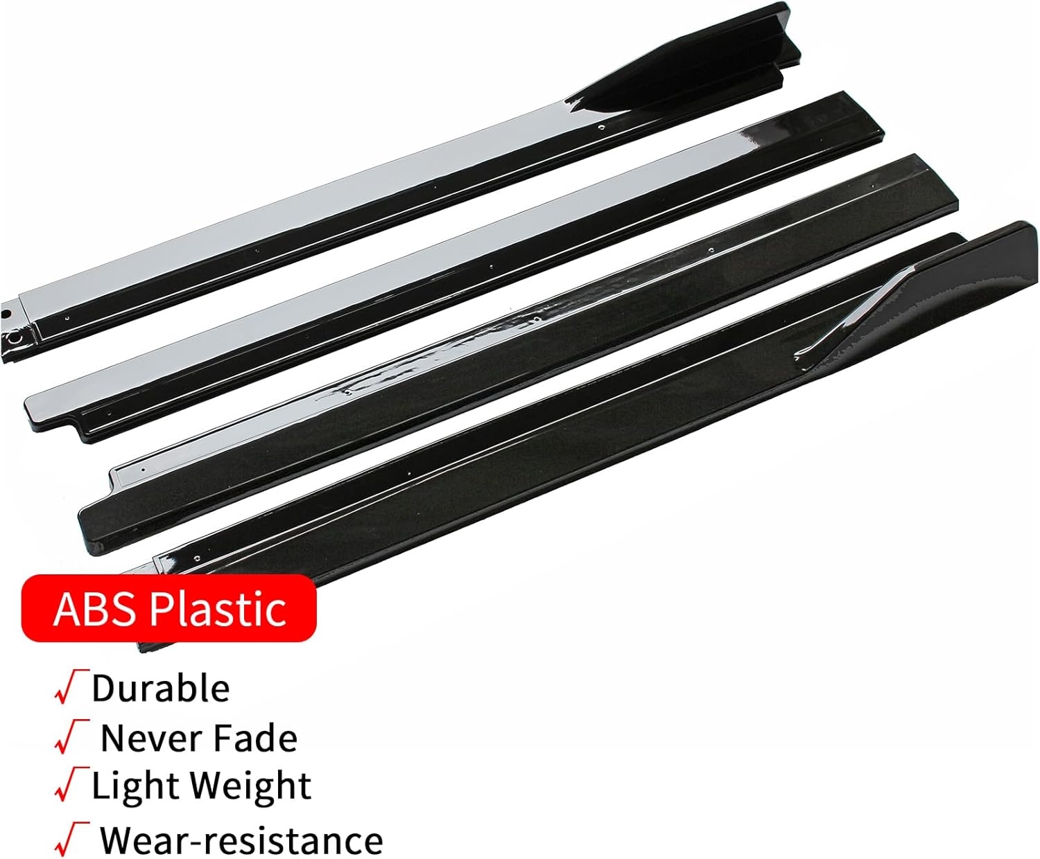 • [3] Materials: A pair rocker panel extensions are made of high impact ABS material to be light-weight and durable.The high-quality side skirts feature reinforced materials and have been tested by multiple inspections, to ensure that safe and long time use