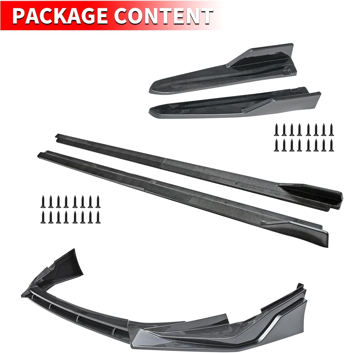 • [5] Packing : A Pair of Side Skirt Extensions & Mounting Screws. The side skirts are easy to install, doesn’t require much effort, and you can easily complete it