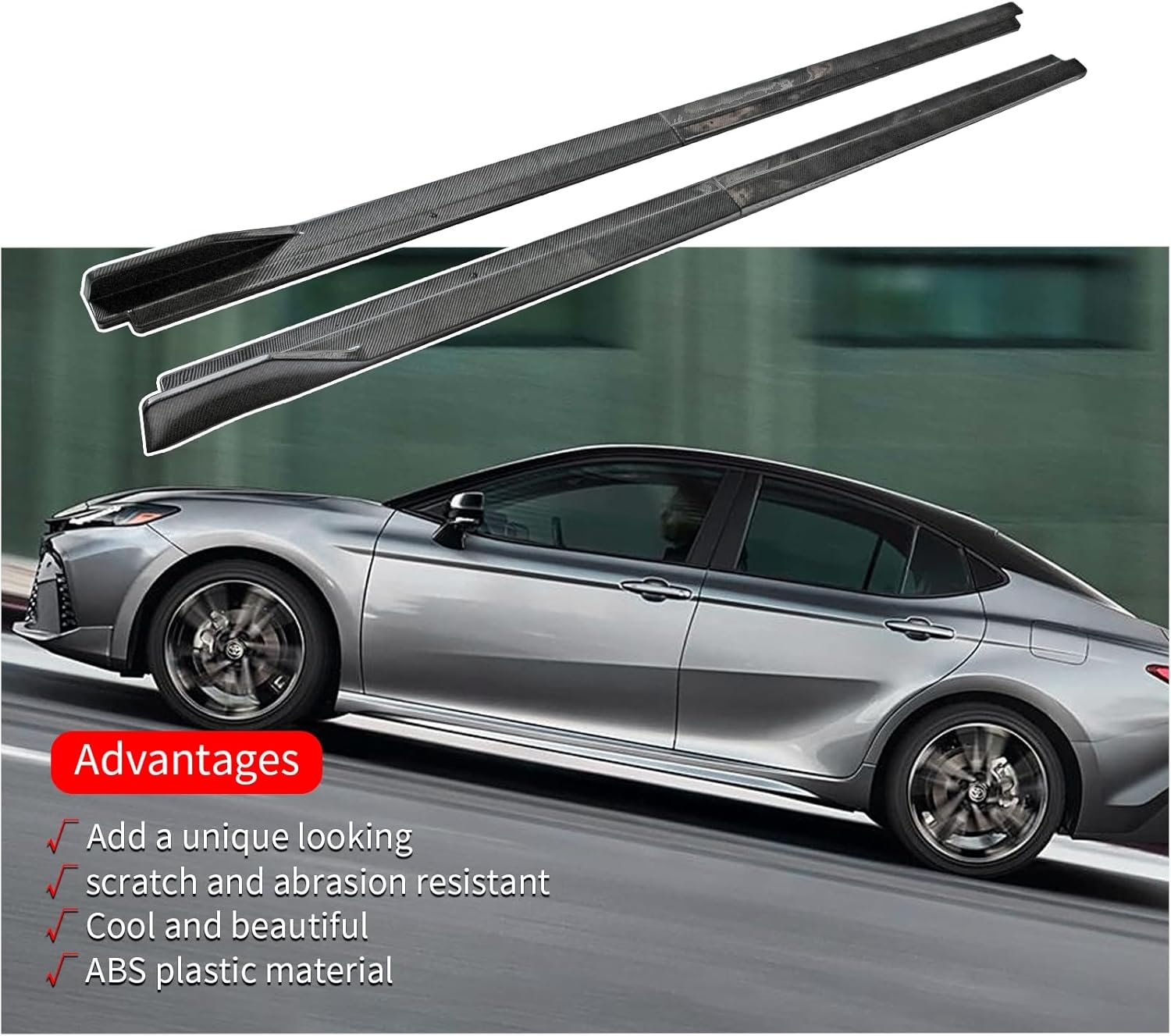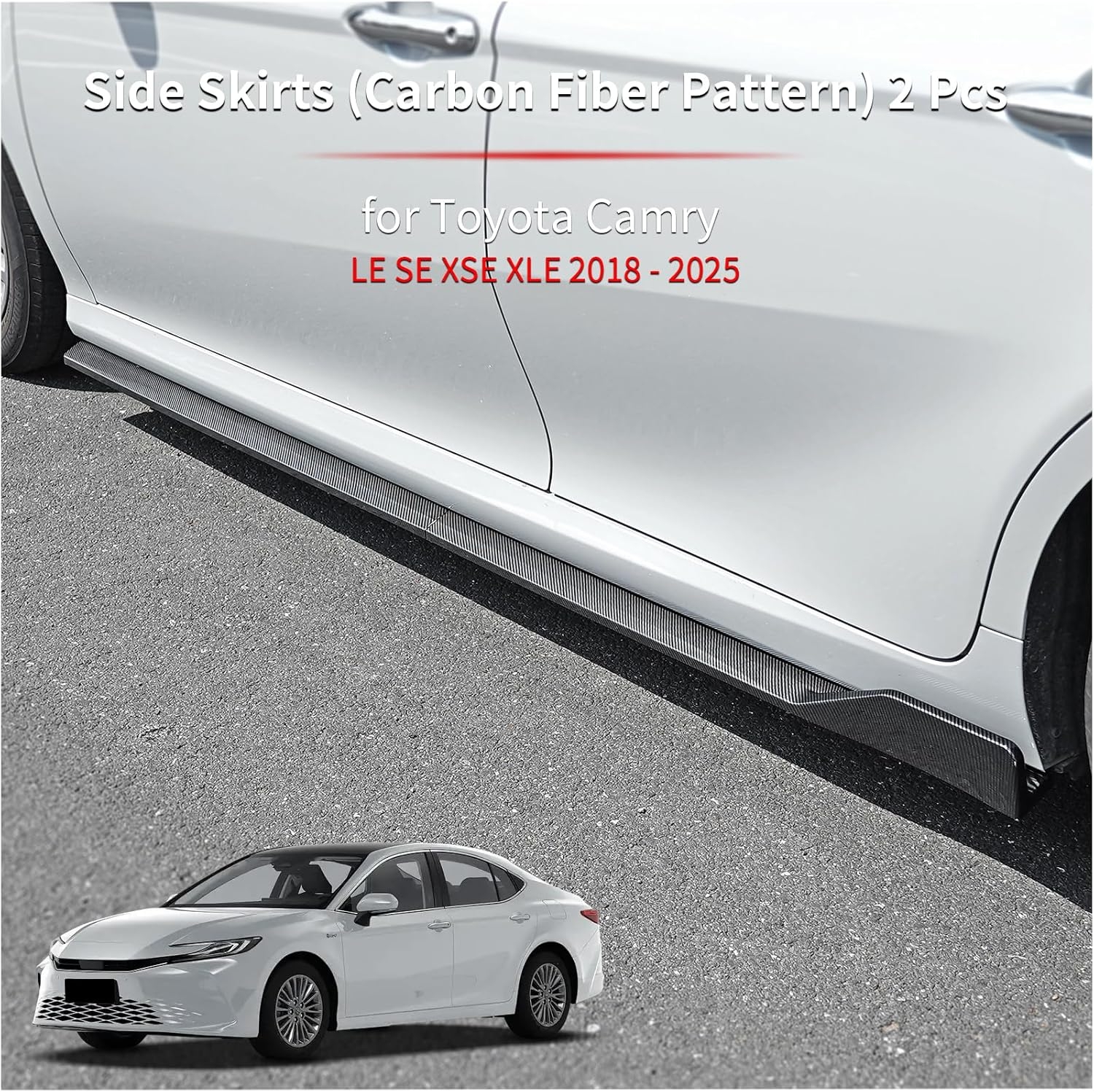 • [1] Fitment : Side Skirts are fit for Toyota Camry LE SE XSE XLE 2018 2019 2020 2021 2022 2023 2024 2025, please confirm your car model before purchasing