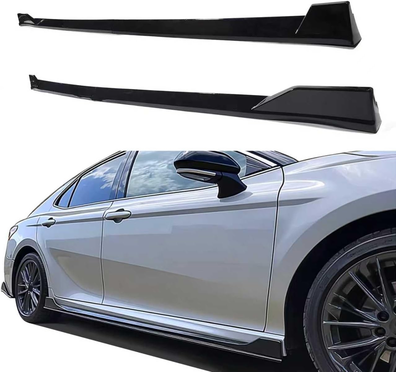 Specification: Side Skirts Kit Extensions Fit for Toyota Camry 2018 2019 2020 2021 2022 2023 2024 2025 SE XSE TRD Style 4PCS Add-On(Glossy Black)