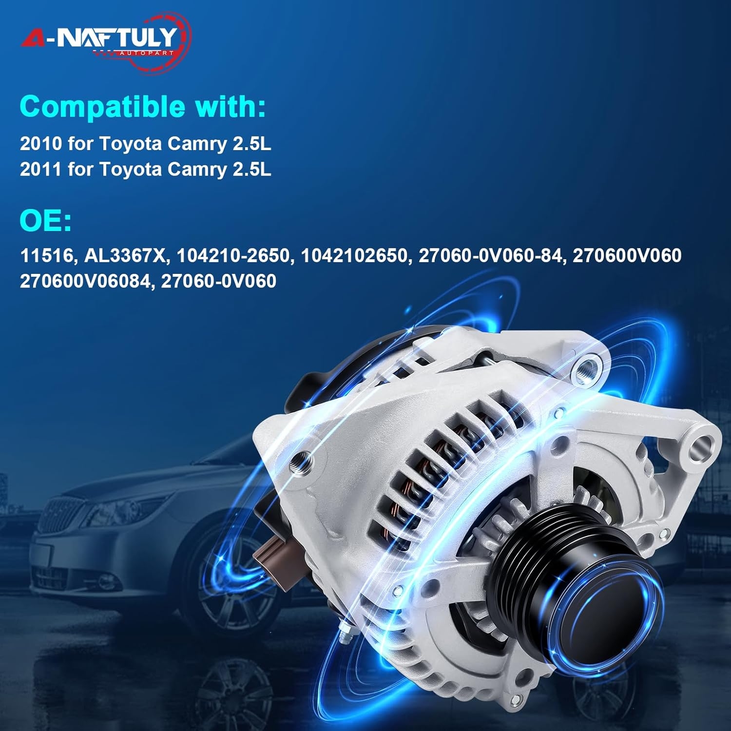 Toyota engineered the Camry 2.5L charging system around a 100-amp alternator to balance electrical demand and long-term reliability. This alternator delivers: