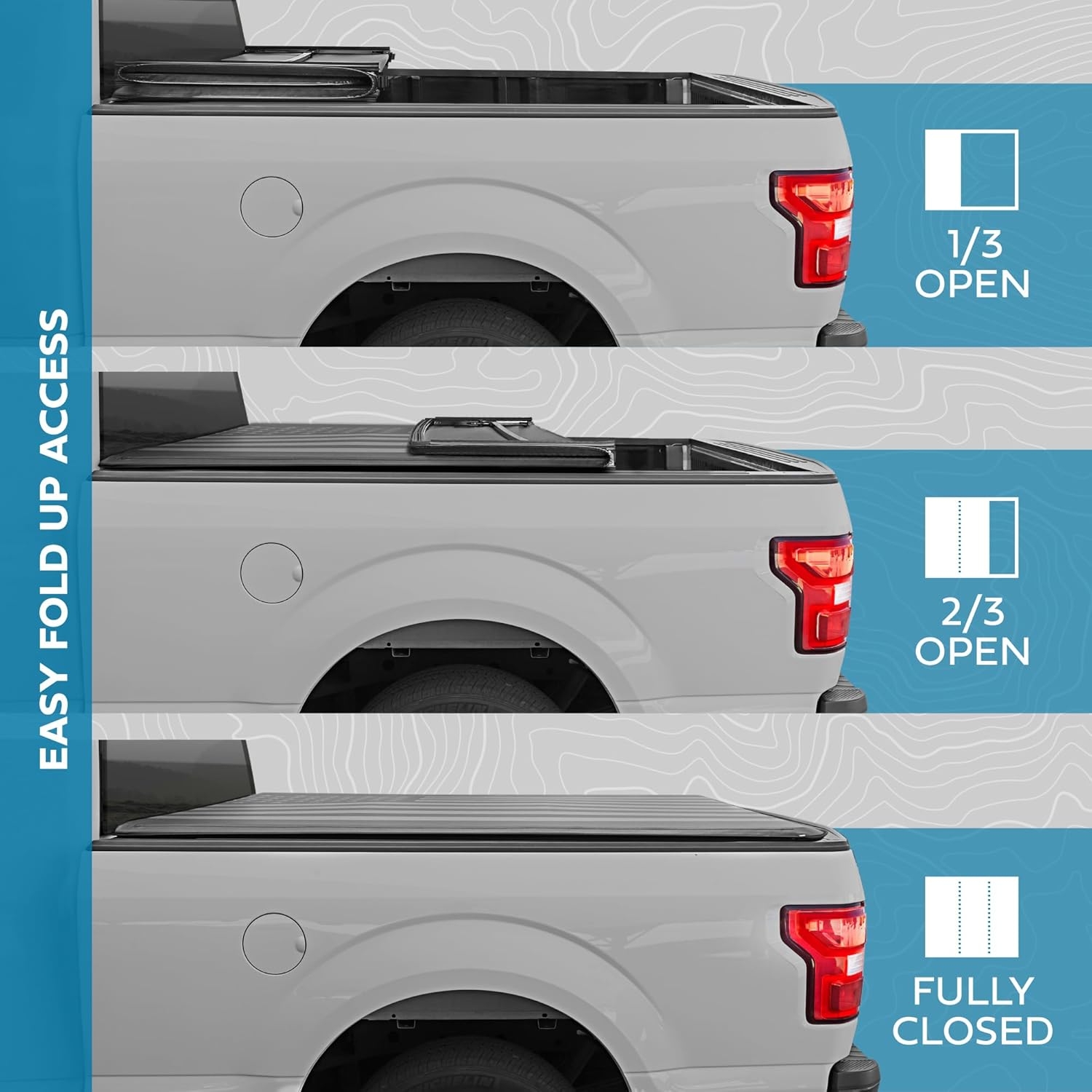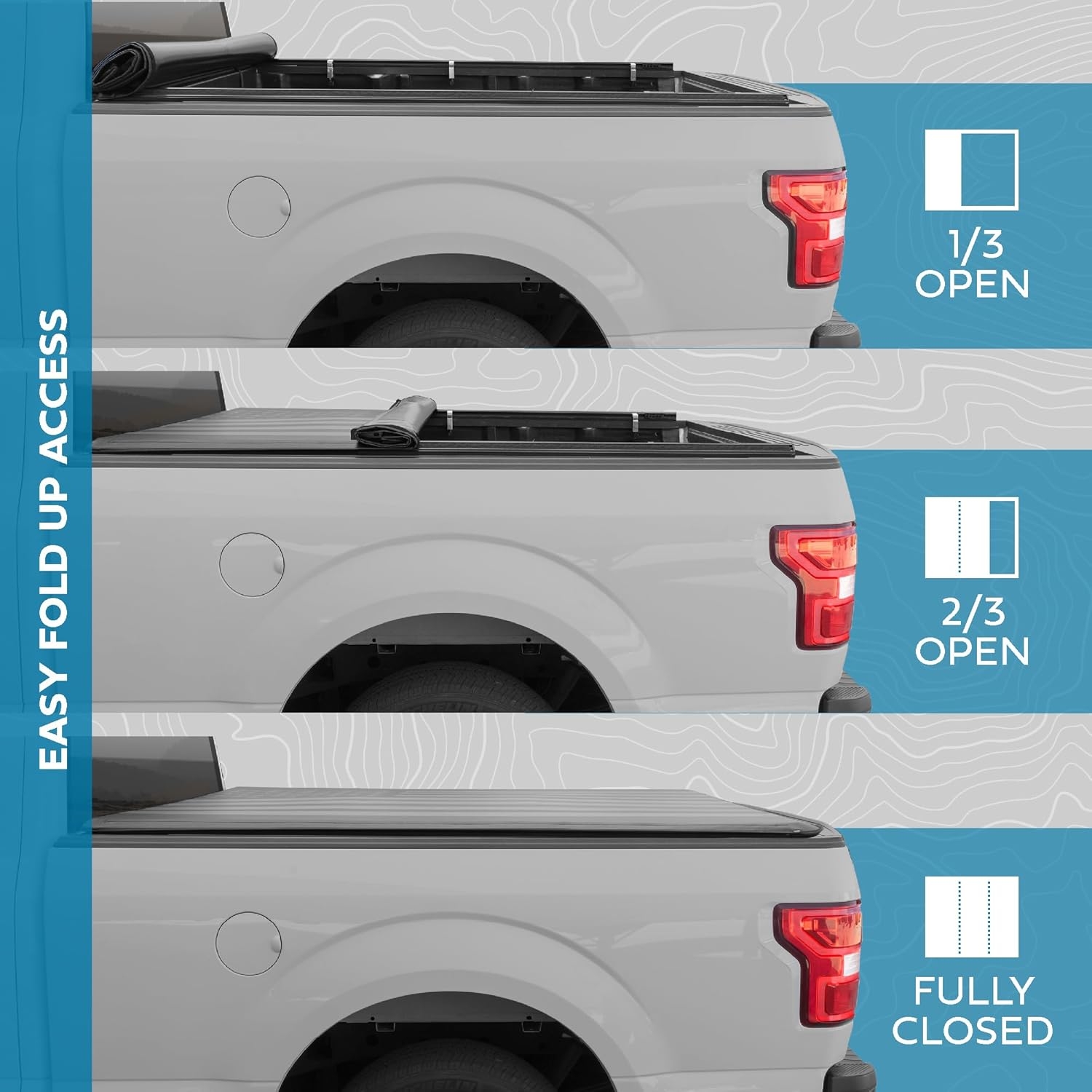 I had high expectations from this based on the hand full of positive reviews and photos so I believe I got the lemon in the batch. The framing was wonky and leaned to the left of the bed so the first lock handle would be fine but than it would be too far away from the framing at all adjustments it would come close enough to touch the truck bed but not enough for it to lock down. Adjusted like crazy and it was always just too short. You can see the framing was wonky because of the line ridges that run down the top of the bed, it would be covered at the top but you could see the ridge line showing at the end of the bed showing how wonky it was.Side note and not a big deal either but worth noting, I did sorta expect to get the free bee matching windshield cover but I did not. So that was a small bummer.The cover does look super cool. I really wish it worked out. Too expensive for me to reorder. Not worth the gamble. Sadly Returning the item and getting a hard top one. If you look at a soft top tri fold in other brands this one is priced very expensive just for a printed flag design. After more researching for another $70 you can get a hard top tri fold cover. So I think I was just over looking it being over priced because I liked the flag print.