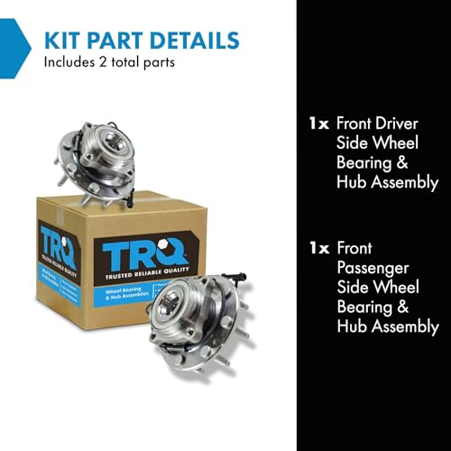 Specification: TRQ Front Left and Right Wheel Bearing and Hub Assembly 2 Piece Set for 4 Wheel Drive 8 Lug Models ONLY Compatible with 99-07 Silverado/Sierra 2500HD/3500HD 4×4 8 Lug Models