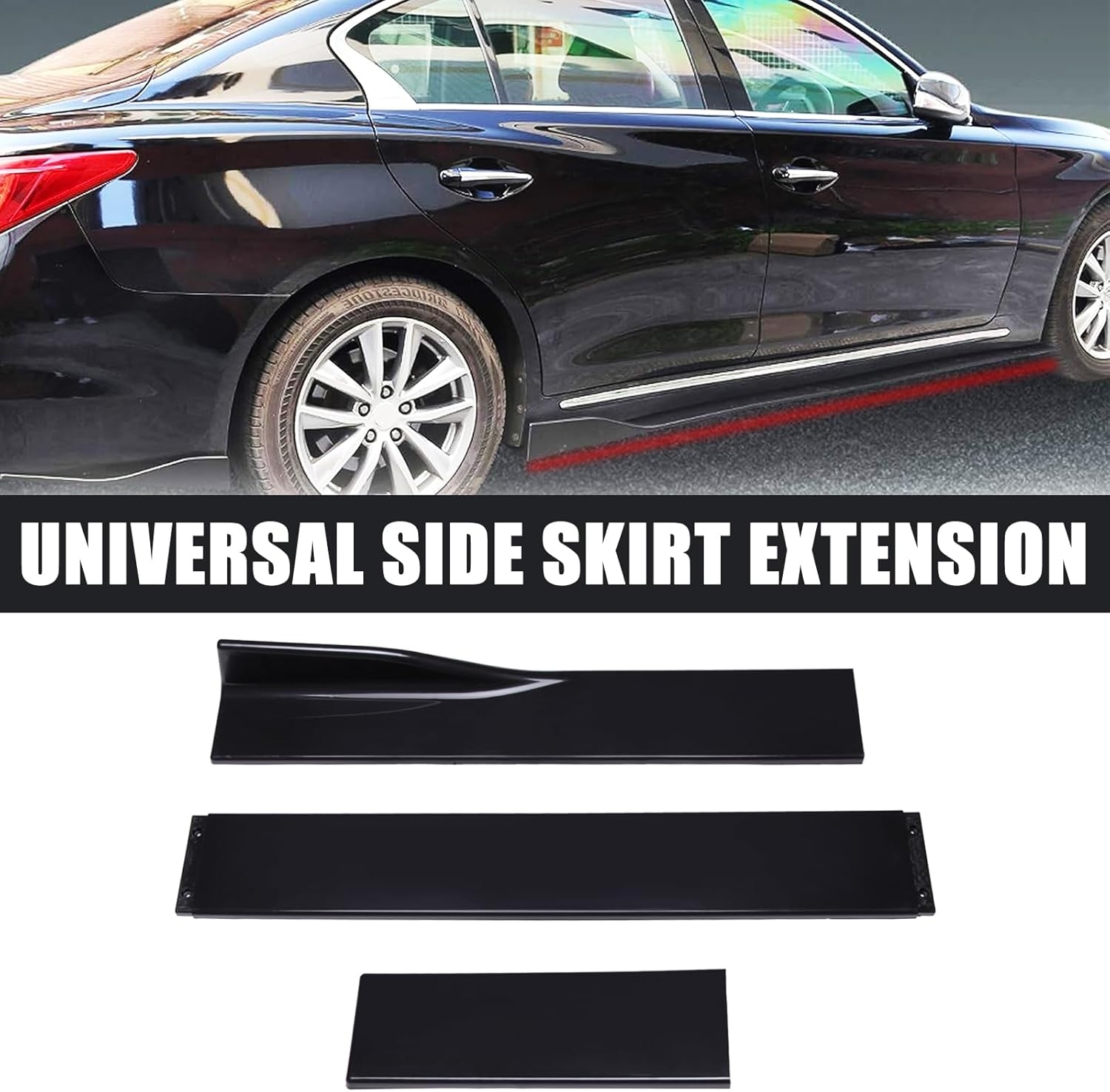 • 【𝐔𝐧𝐢𝐪𝐮𝐞 𝐋𝐨𝐨𝐤】- This universal side skirt splitter car skirts body kit dramatically enhance your car’s sporty look. The panel winglet universal side skirts provide a unique sense of aggression without compromising the overall style of the car. It provides a fashion appearance that provides an exhilarating and elegant driving experience.