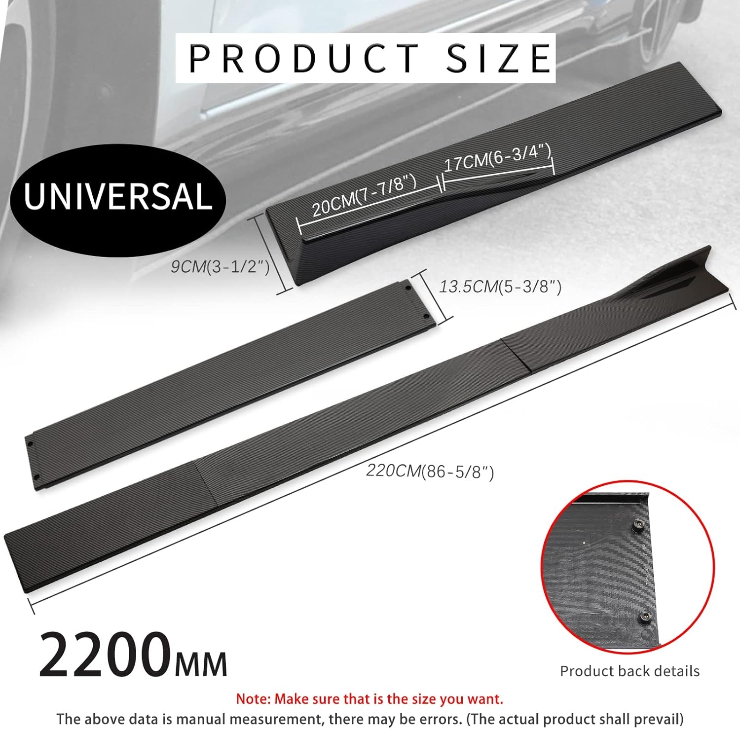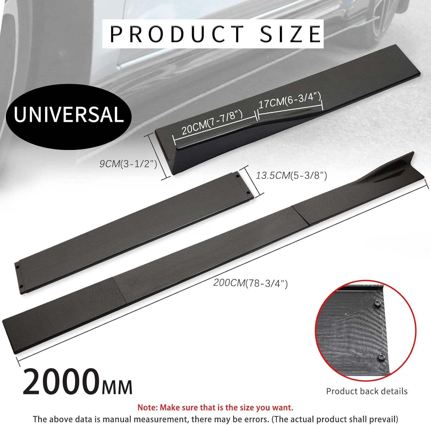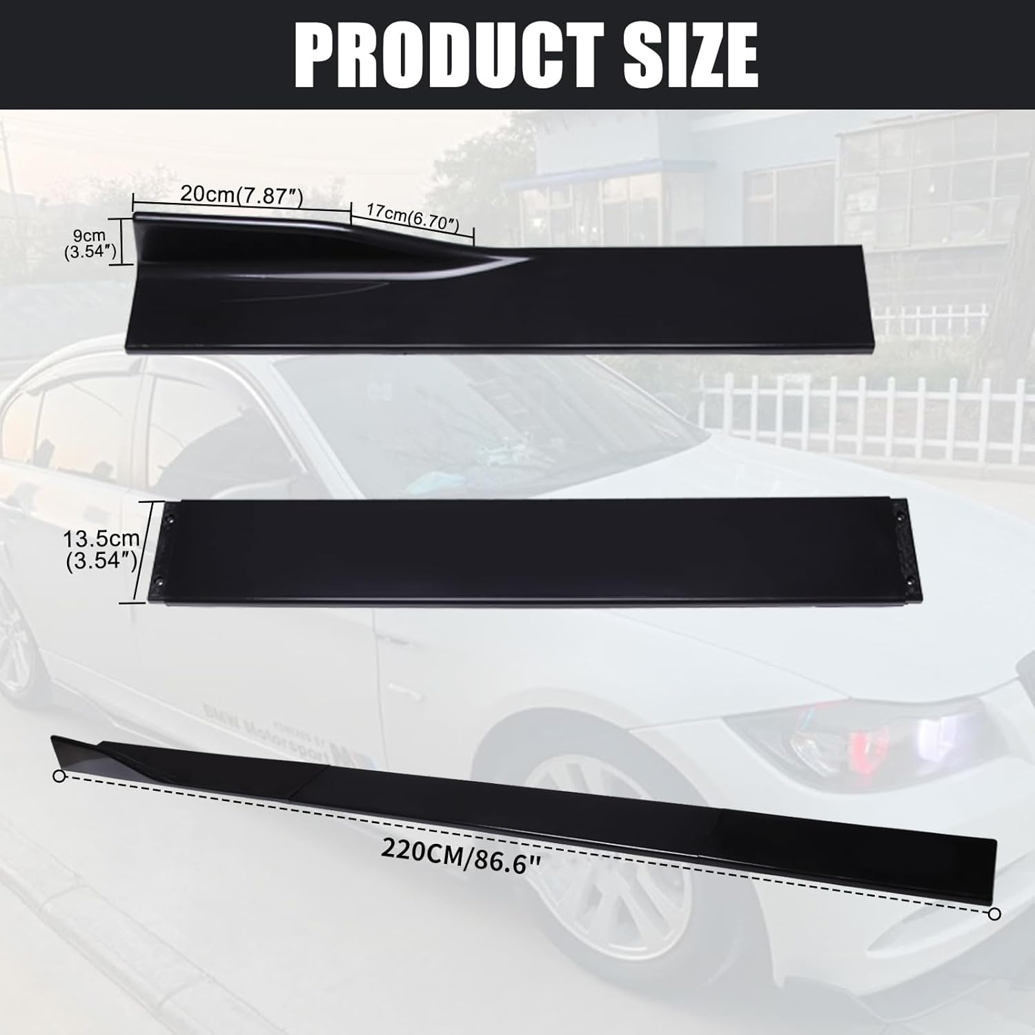 • 【𝐔𝐧𝐢𝐯𝐞𝐫𝐬𝐚𝐥 𝐂𝐨𝐦𝐩𝐚𝐭𝐢𝐛𝐢𝐥𝐢𝐭𝐲】- DREAMOTOR car three-section combination car side skirts, the total length is 2M/78.7inch. Three sections that can be easily adjusted to be compatible with different car models.