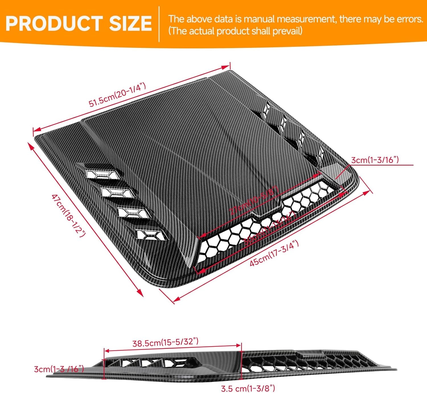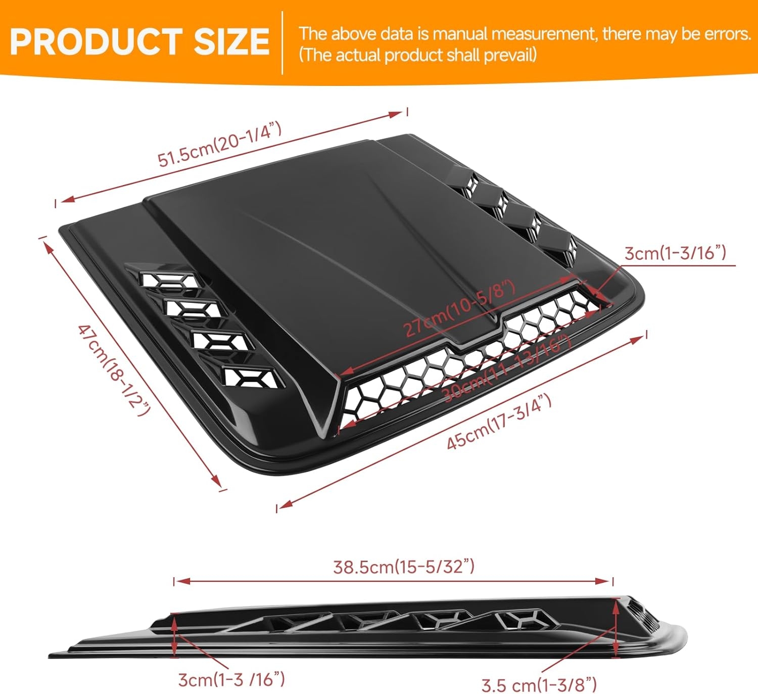 Specification: Hood Scoops For Cars, Universal Hood Scoop Hood Vents, Automotive Hood Scoops for Trucks Compatible with Dodge Ram 1500 2500 F150 F250 F350 Toyota Tundra GMC Sierra 1500 2500 Jeep Wrangler