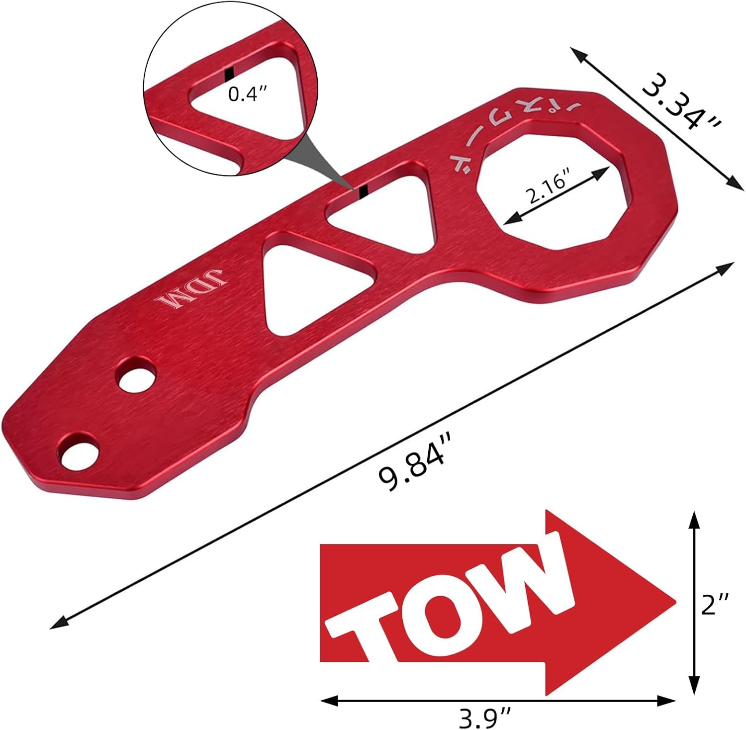 The length of this red tow hook is 9.84″