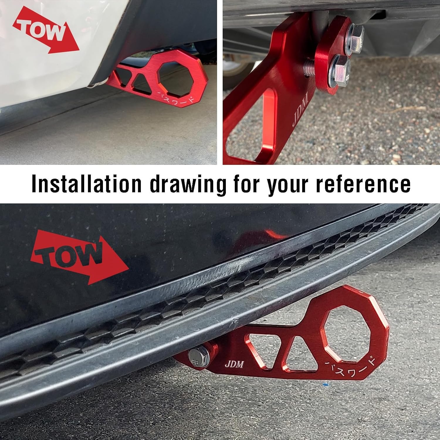 • ✓ EASY INSTALLATION-This JDM tow hook Suitable for most vehicle models. Ensure that your vehicle model has a hook, as shown in Figure 6, and tighten it with screws to secure it, you can install it.