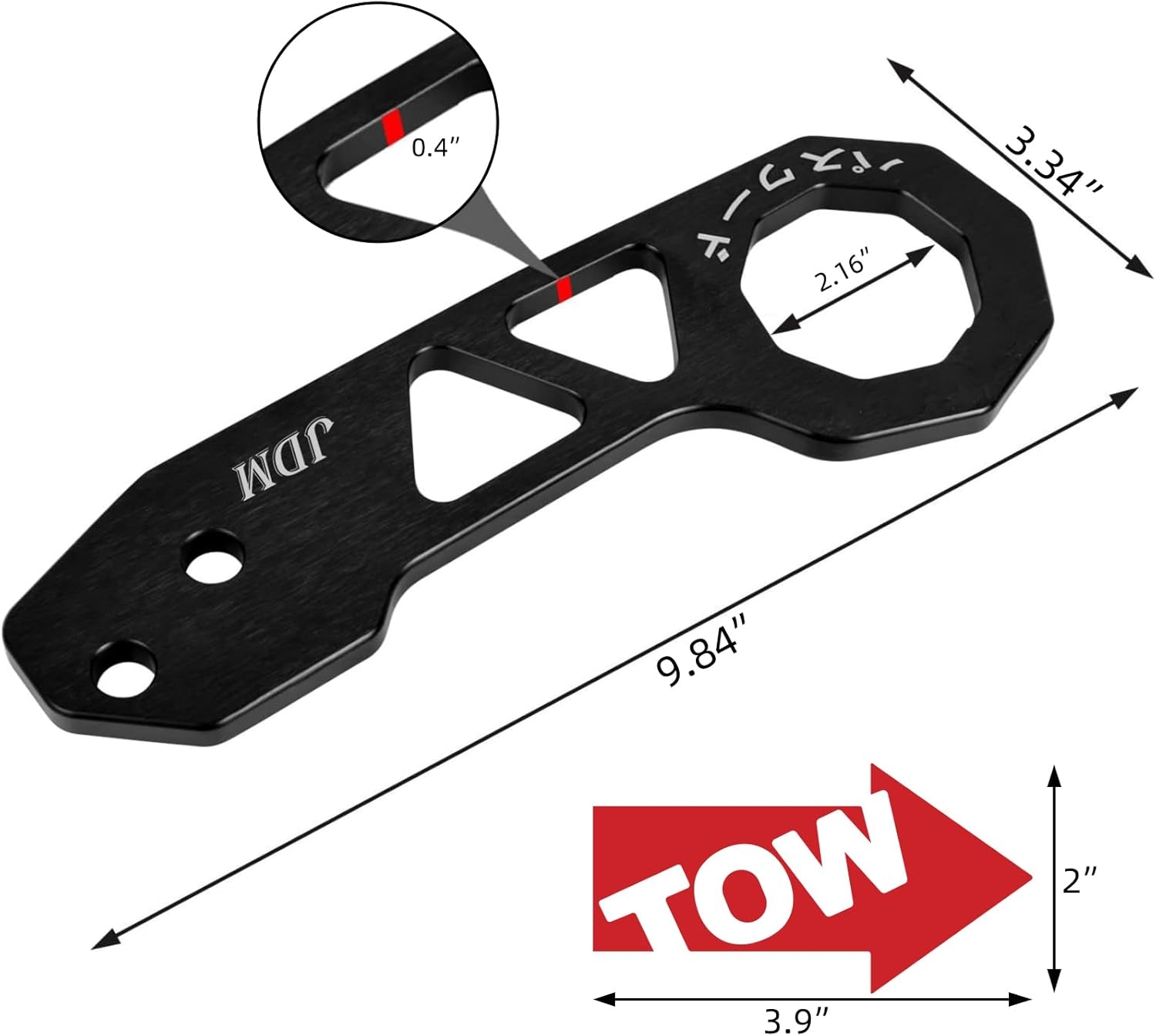 • ✓ HIGH STRENGTH-Supports tow weight of up to 5000 lbs,This tow hook Made of aluminum alloy,The Surface Anodizing and wire drawing process of tow hook .