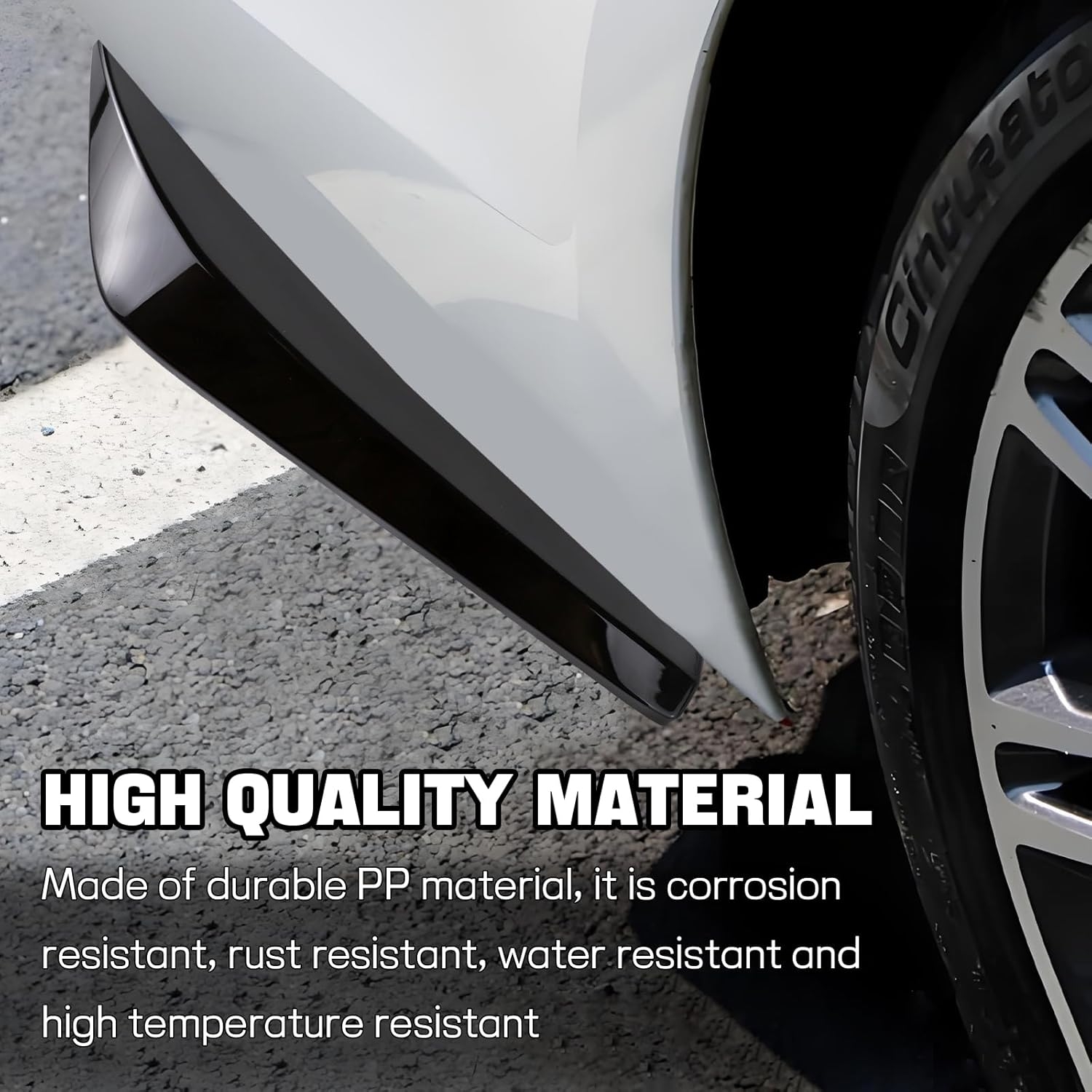 The rear diffuser spoilers visually clean up the lower rear section, while the front lip protector adds a defined edge that makes even stock cars look less unfinished. It’s not pretending to be carbon fiber. It’s pretending to be useful — and succeeding.