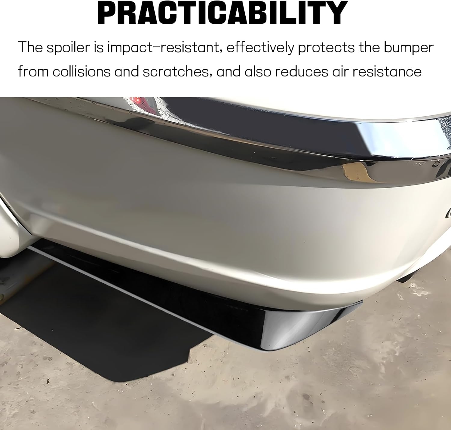 【Practical Functions】: This spoiler kit can withstand impacts and effectively protect your car’s rear bumper from collisions or scratches when backing up or parking. In addition, its shape can reduce air resistance when your vehicle is traveling at high speed to some extent, making your driving more stable and smooth.