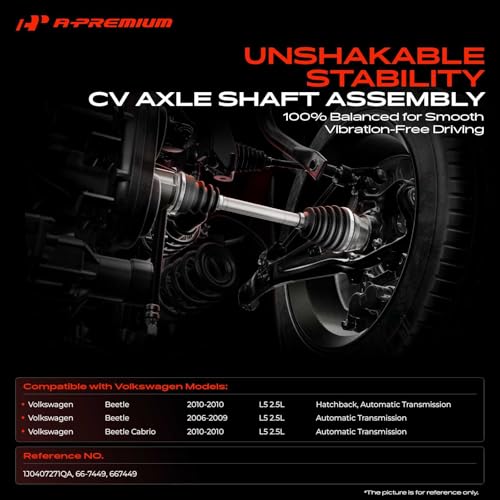 Specification: A-Premium CV Axle Shaft Assembly Compatible with Volkswagen Beetle 2006-2010, Beetle Cabrio 2010, L5 2.5L, Automatic Transmission, Front Left Driver Side
