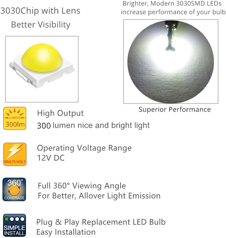 🔌 Plug & Play Installation: Direct replacement for factory bulbs—no wiring or modification required.