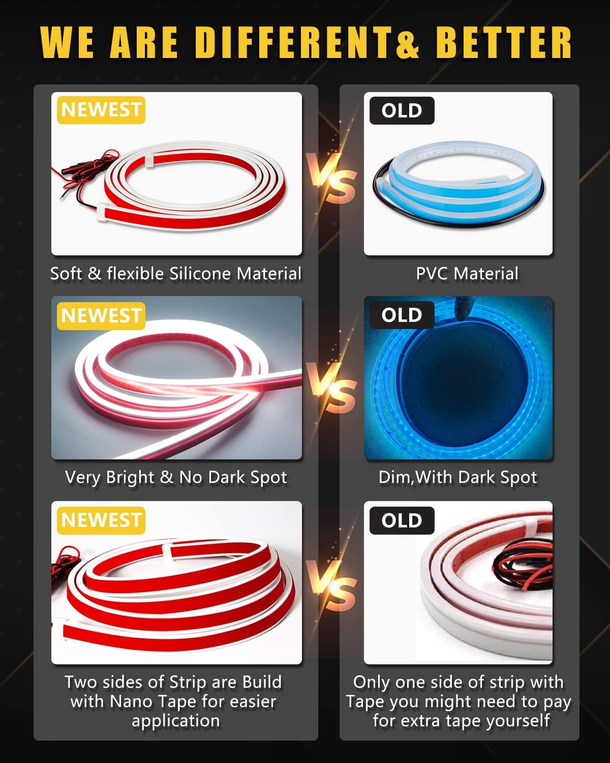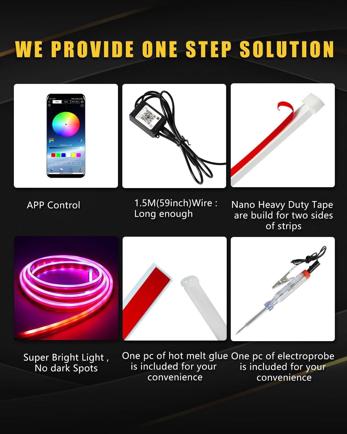 Silicone-encased LEDs stay flexible and protected.
