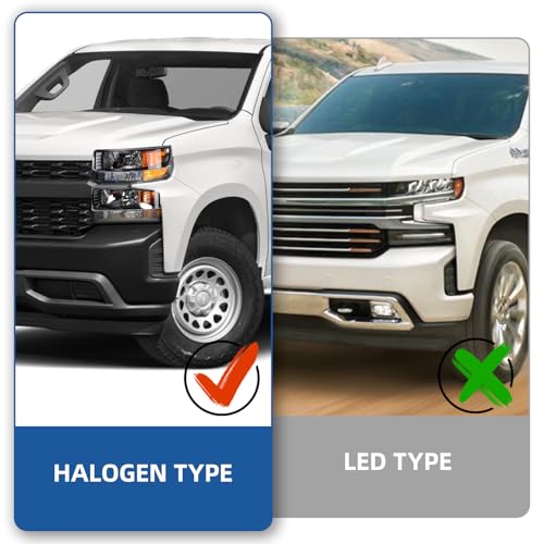 Compatible models: The Halogen headlight assembly compatible with 2019 2020 2021 Chevrolet Silverado 1500. Only applicable to halogen version models, not suitable for LED headlights